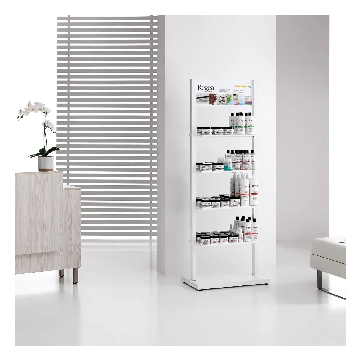 Valorizza i tuoi prodotti e cattura l'attenzione della clientela con questo elegante e versatile espositore negozio bifacciale bianco. Perfetto per parrucchieri, barbieri, centri estetici e spa, questo scaffale è progettato per massimizzare la visibilità dei tuoi articoli promozionali, prodotti per la cura dei capelli, trattamenti di bellezza e molto altro.