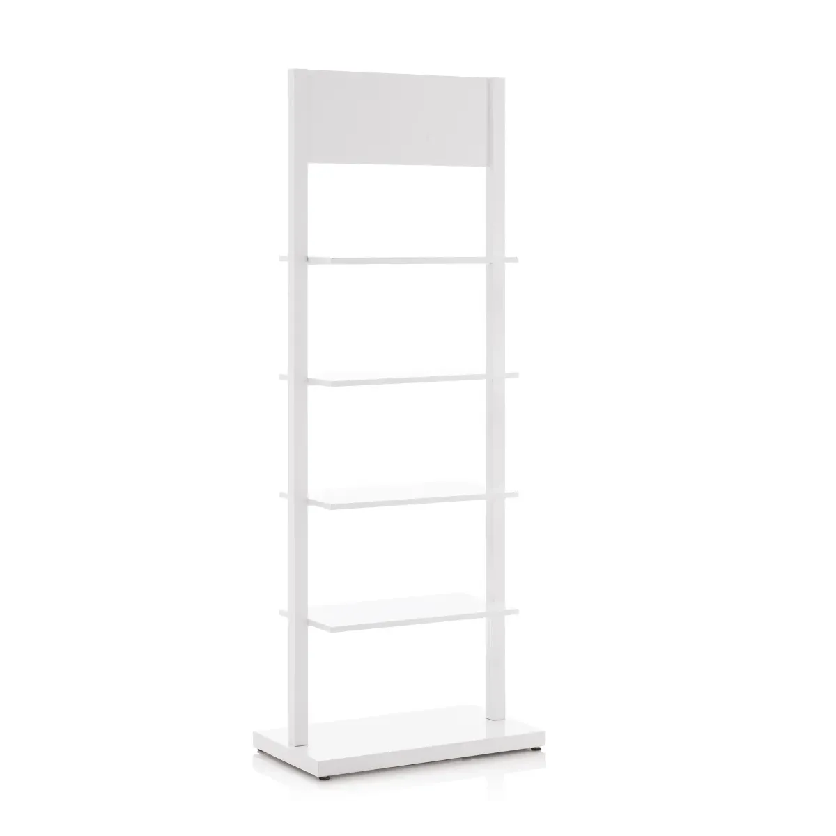Espositore Prodotti Bianco Bifacciale con 4 Mensole per Negozio