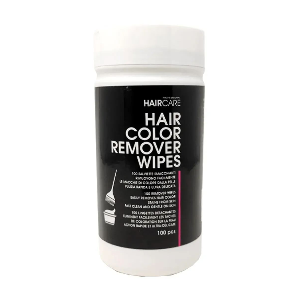 Salviette smacchianti. Rimuovono facilmente le macchie di tintura dalla pelle. Pulizia rapida ed efficace. Pack da 100 salviette.