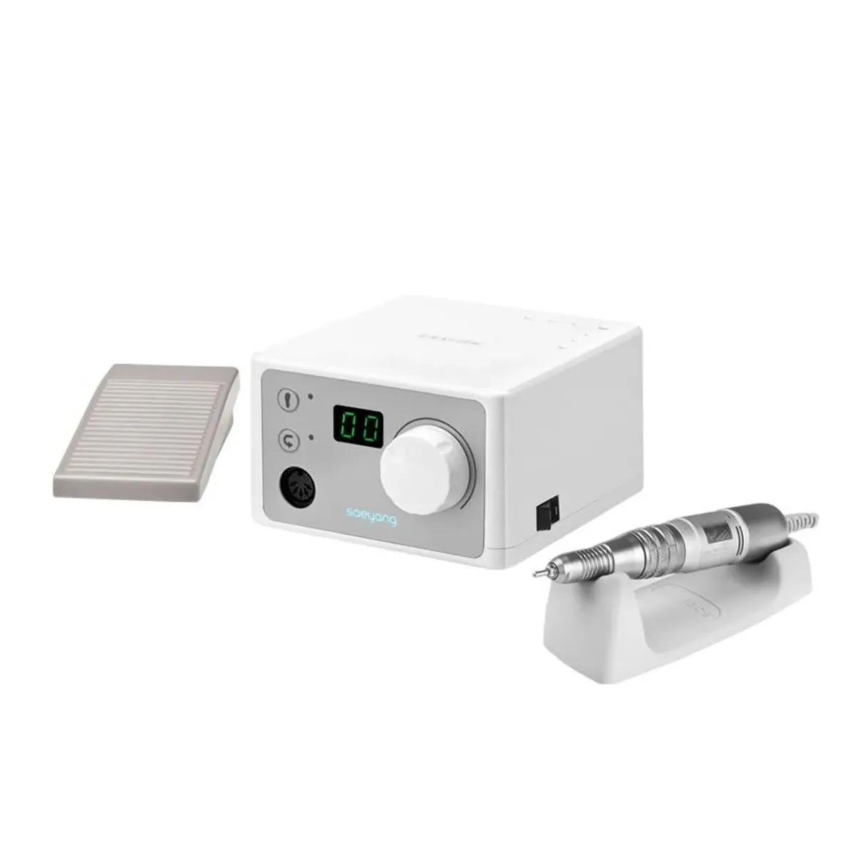 Il suo design compatto e minimale la rende ideale per l’utilizzo quotidiano in salone come anche per l’estetista itinerante. È dotata di un display digitale per il controllo della velocità, di una funzione di risparmio energetico automatica e di un comodo interruttore Reverse per invertire la direzione di rotazione.
