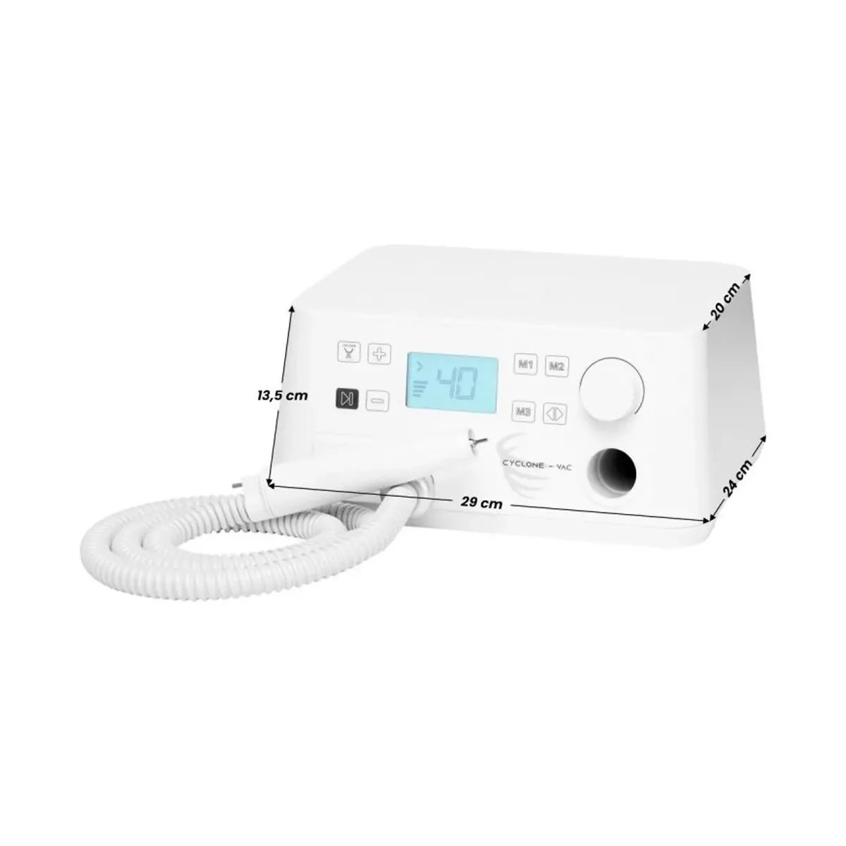 Il Manipolo è silenzioso ed ergonomico, dotato di motore brushless con velocità regolabile fino a 40.000 giri al minuto con un efficiente aspiratore garantisce un’ottima qualità dei servizi e i più alti standard igienici. La polvere proveniente dal sito di trattamento viene aspirata attraverso i fori presenti nel manipolo direttamente nel filtro.