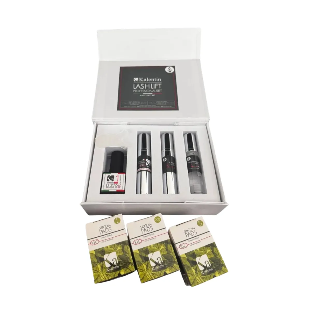 Kit Laminazione Ciglia Kalentin 4 Fasi utilizzato nei Migliori Centri Estetici per curvare le ciglia naturali ottenendo un look sano e naturale. Con la laminazione alle ciglia darai una maggiore curvatura alle ciglia che può durare fino ad 8 settimane.