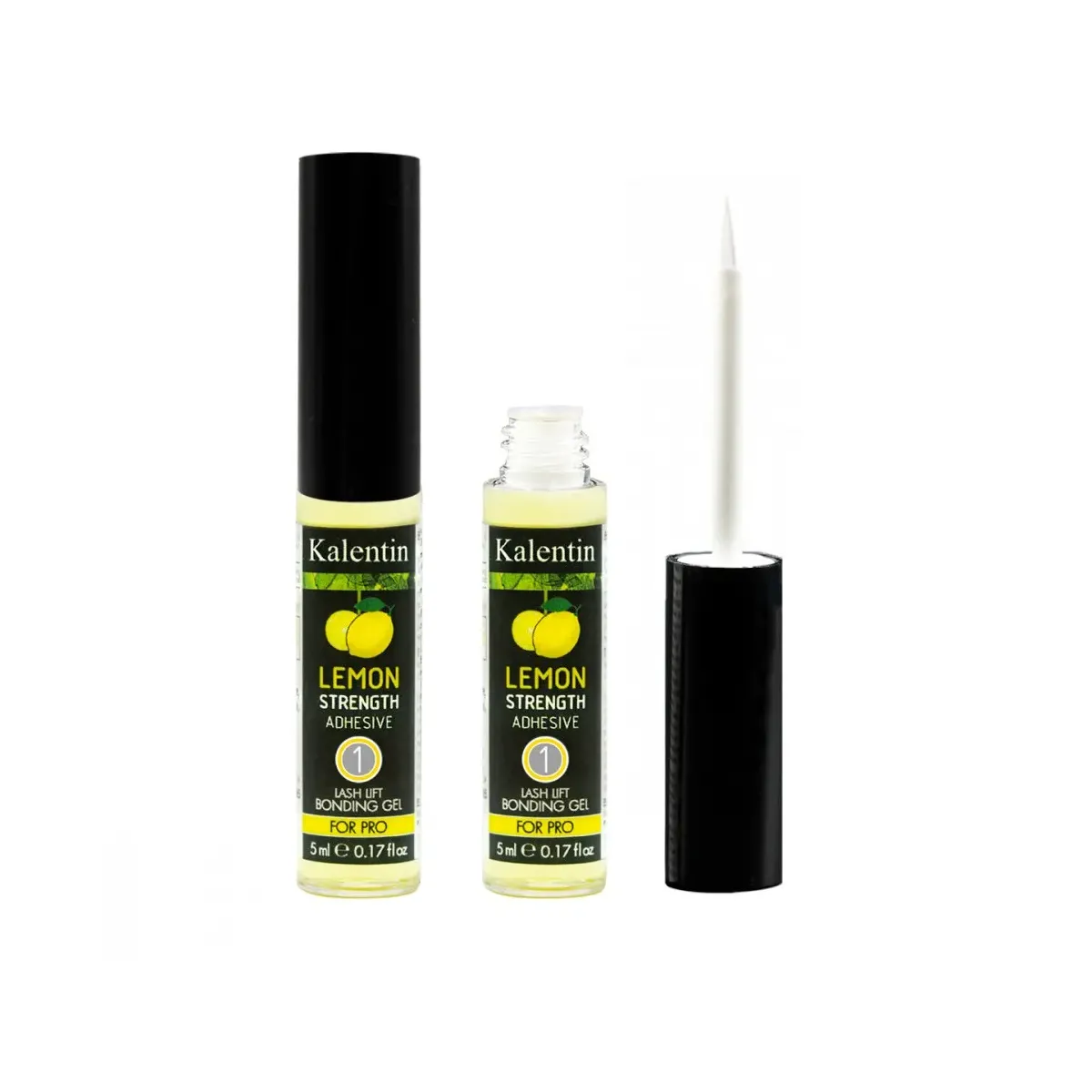 Kalentin Lemon Strength Adhesive è impiegata nella 1° fase della procedura di laminazione ciglia, la Lemon strenght adesive e non è altro che una colla specificatamente progettata per mantenere salde le ciglia naturali ai silicon pads durante il trattamento di laminazione ciglia.