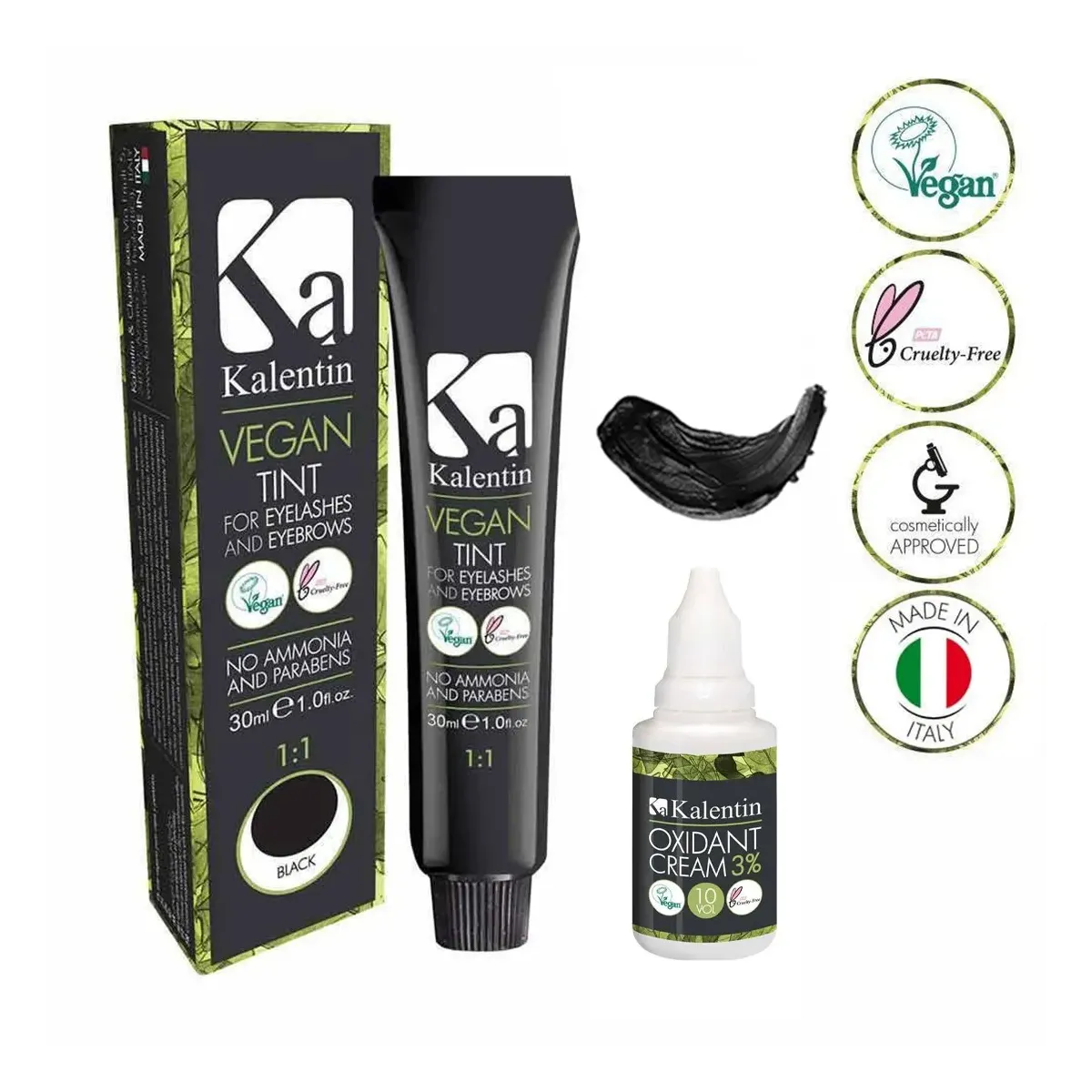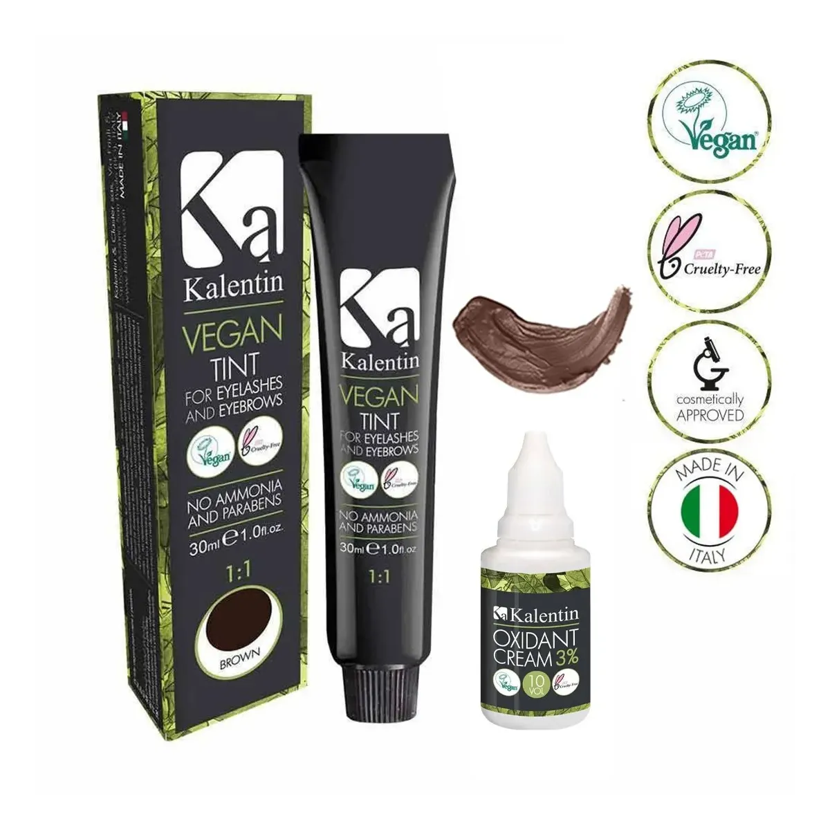 Tinte Sopracciglia e Ciglia Vegane con Ossigeno 3% Kalentin