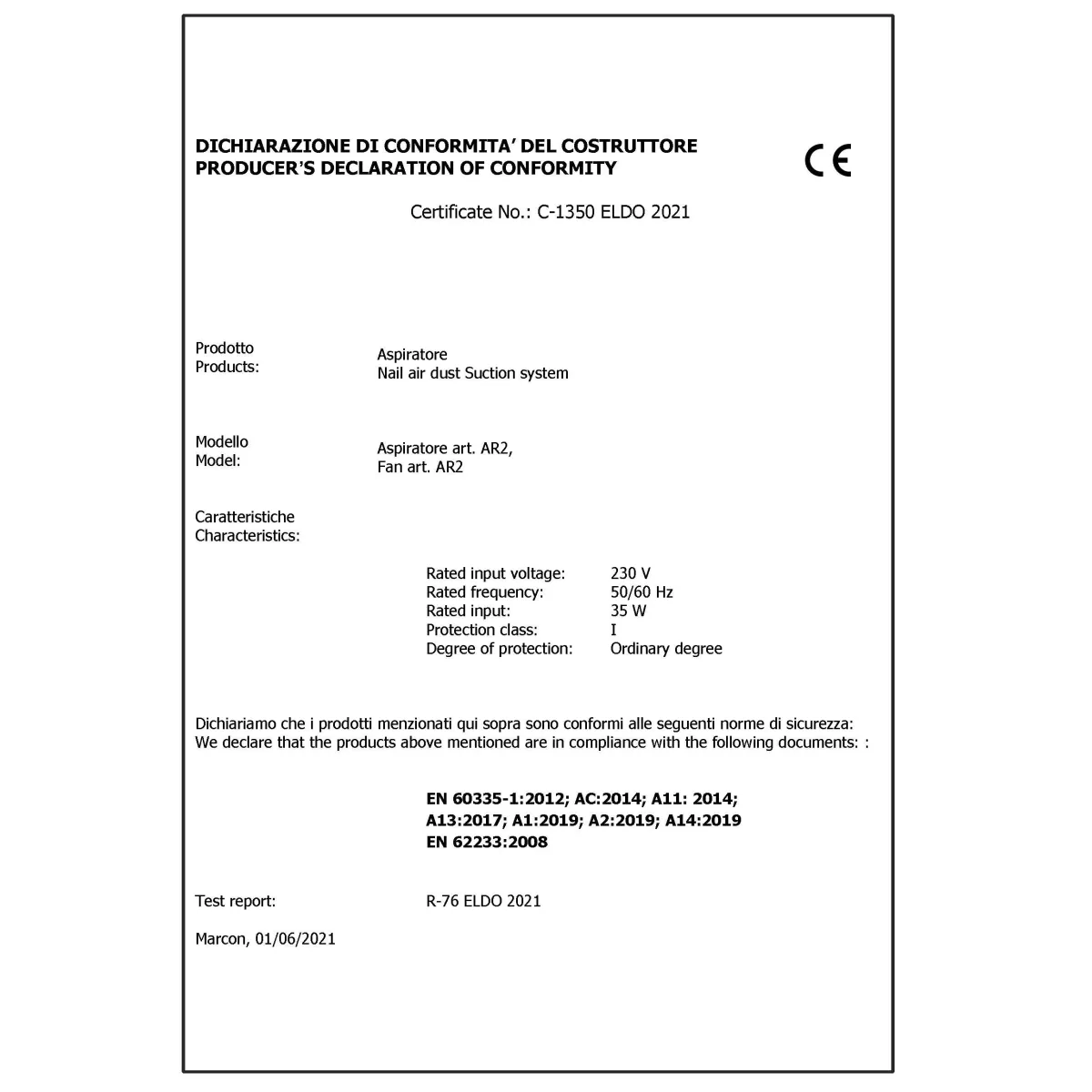 - Voltaggio: 220-240 V 50/60 Hz