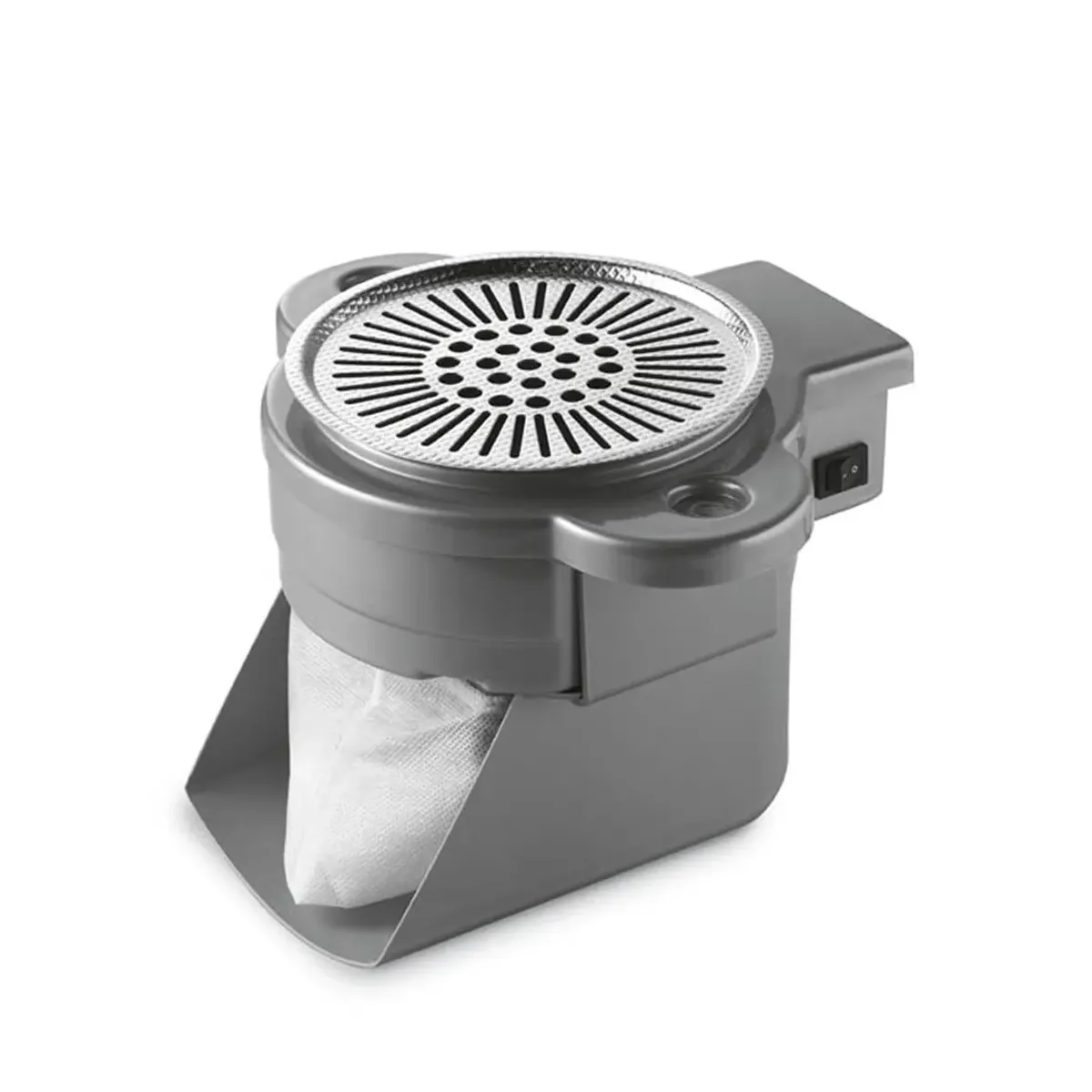 Aspiratore Unghie da incasso per tavolo manicure con foro rotondo, motore da 30 Watt, filtro estraibile a carboni attivi per un totale trattenimento delle polveri (da pulire dopo ogni operazione per una perfetta funzione aspirante, non usare acqua o liquidi, basta picchiettarlo delicatamente). Completo di cavo di alimentazione, interruttore acceso/spento e griglia copri-foro in ABS per il tavolo.