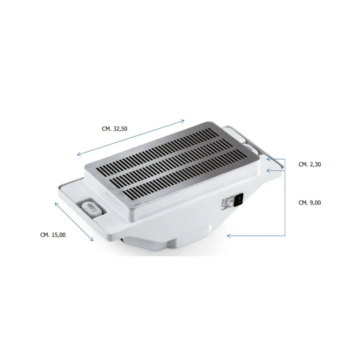 Dotato di filtro ai carboni attivi, neutralizza gli odori e purifica l’aria, assicurando un’esperienza confortevole sia per il professionista che per il cliente. La griglia in acciaio inox offre resistenza e facile manutenzione, mentre l’interruttore laterale consente un utilizzo semplice e immediato.