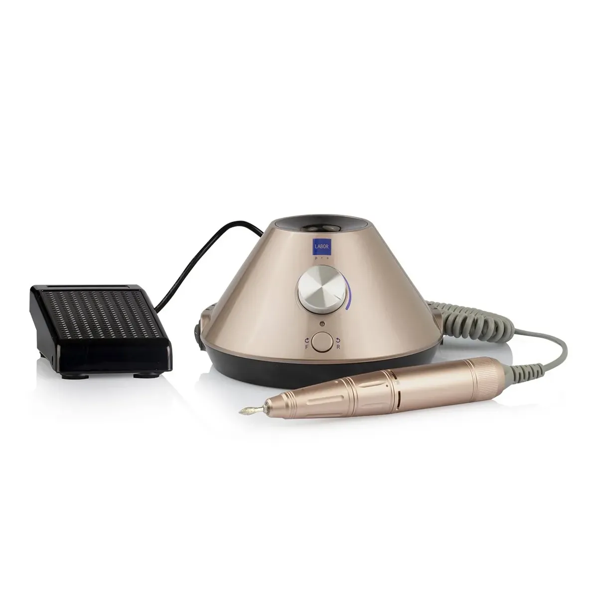 Il Kit Labor Pro combina due strumenti fondamentali per la manicure e la ricostruzione unghie professionale: una fresa ad alte prestazioni e un aspiratore polveri di ultima generazione.