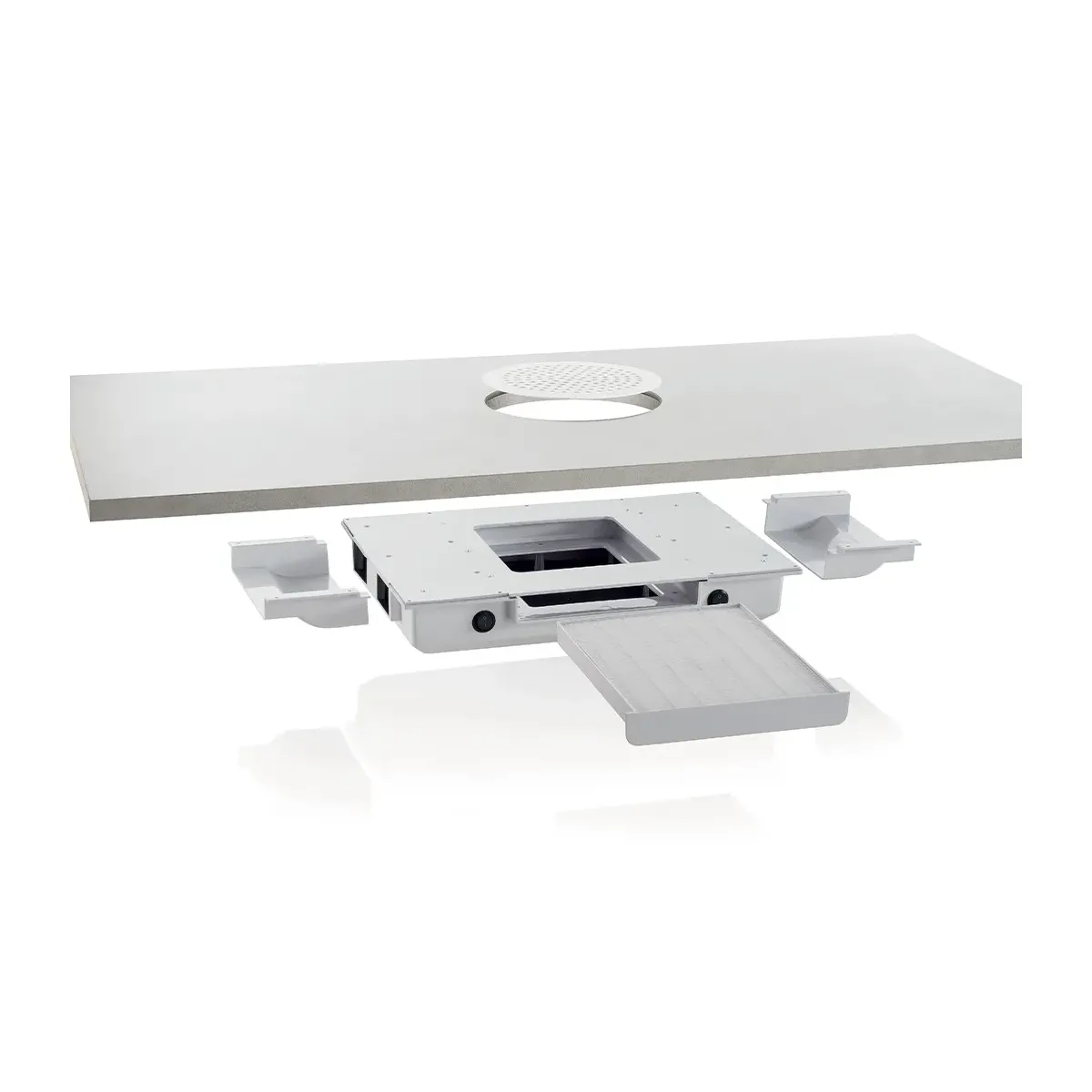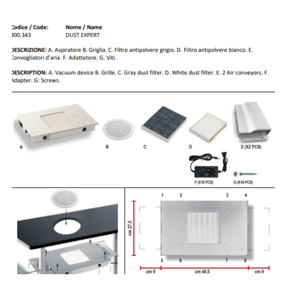 Questo aspiratore, progettato per l’incasso su tavolo manicure, è dotato di 4 motori ad alte prestazioni, con una velocità di aspirazione fino a 4.500 RPM e un livello sonoro contenuto di 80 dB, garantendo efficienza e comfort.