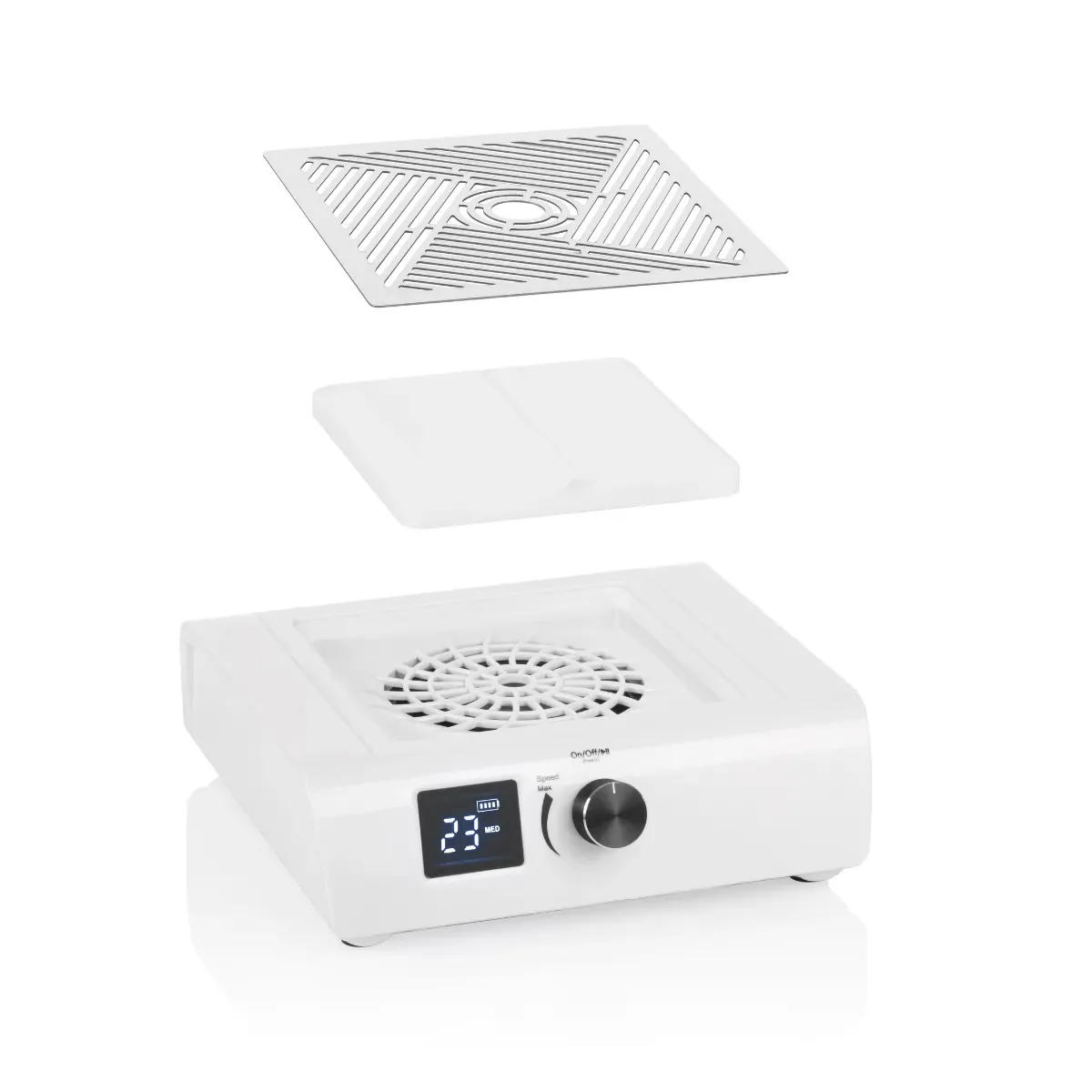 Questo aspiratore da tavolo professionale è progettato per garantire un ambiente di lavoro pulito, igienico e confortevole durante i trattamenti di ricostruzione e limatura delle unghie. Dotato di motore brushless ad alta potenza, assicura un’aspirazione efficace e costante, riducendo al minimo la dispersione di polveri nell’aria.