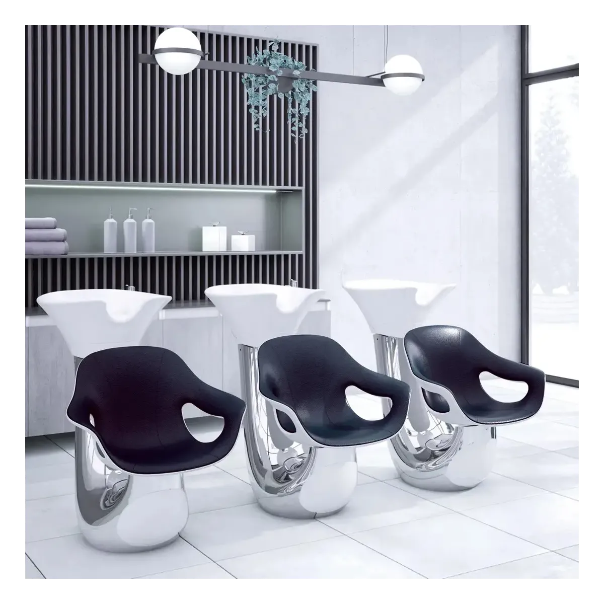 La poltrona ergonomica garantisce una seduta confortevole, mentre il bacino in ceramica regolabile facilita il lavoro dell’hairstylist, riducendo sforzi e assicurando un lavaggio piacevole per il cliente.
