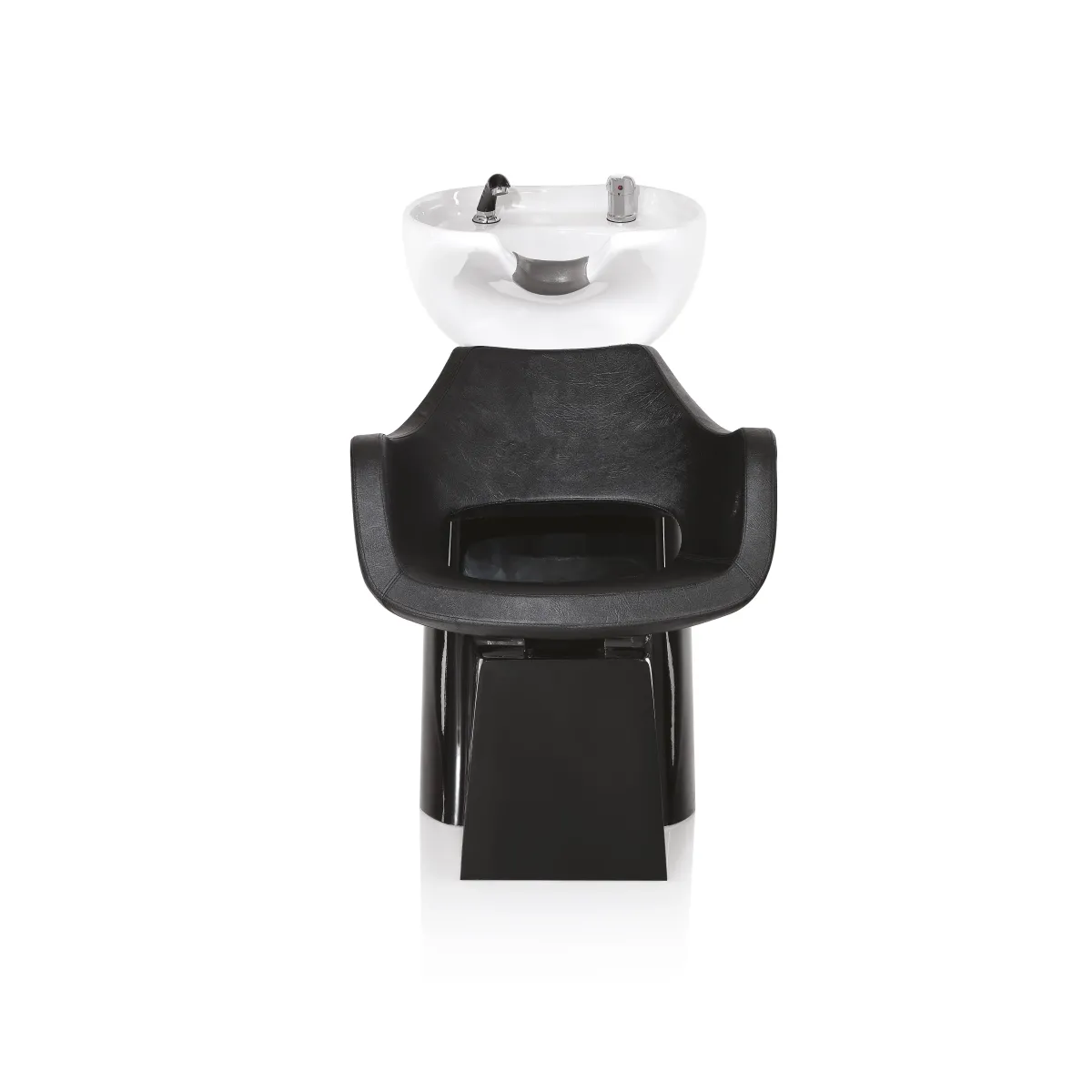 La vasca dei lavaggi parrucchiere posa su di una struttura in acciaio formata da un particolare design con verniciatura nera. Sul lato anteriore è presente la seduta in monoscocca completa di braccioli e, per una maggiore comodità, è presente un foro ovale ergonomico; infine il tutto è imbottito ad alta densità, rivestita in sky ecopelle di colore nero.