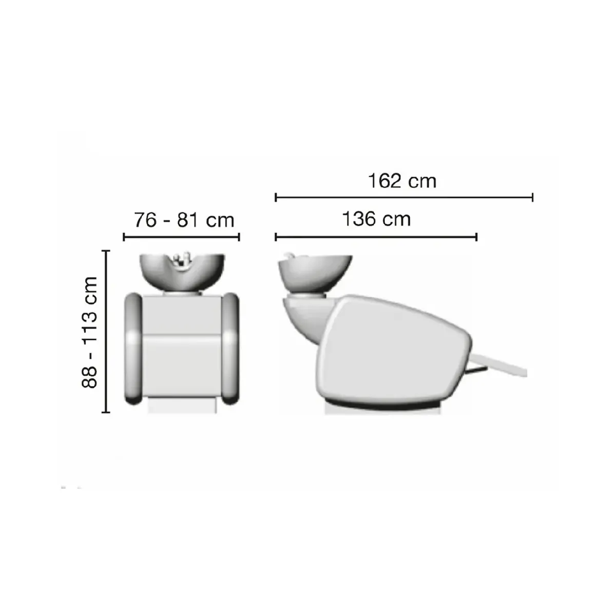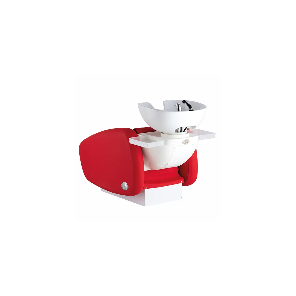Il lavatesta per parrucchieri è strutturato in legno e metallo, imbottito con poliuretano schiumato e rivestito in skai dai colori personalizzabili. La vasca basculante è molto ampia ed arriverà già completa di doccetta con miscelatore, inoltre è dotata di due vassoi laterali per favorire l'appoggio di flaconi e oggetti utili durante il lavaggio.