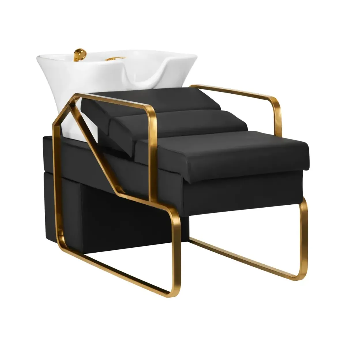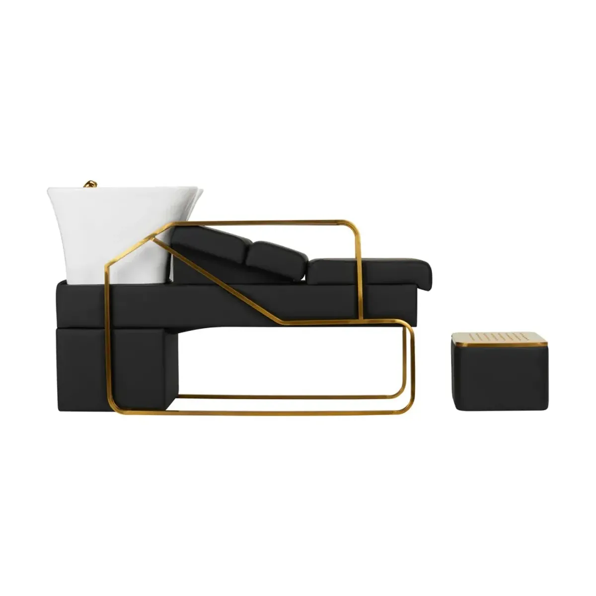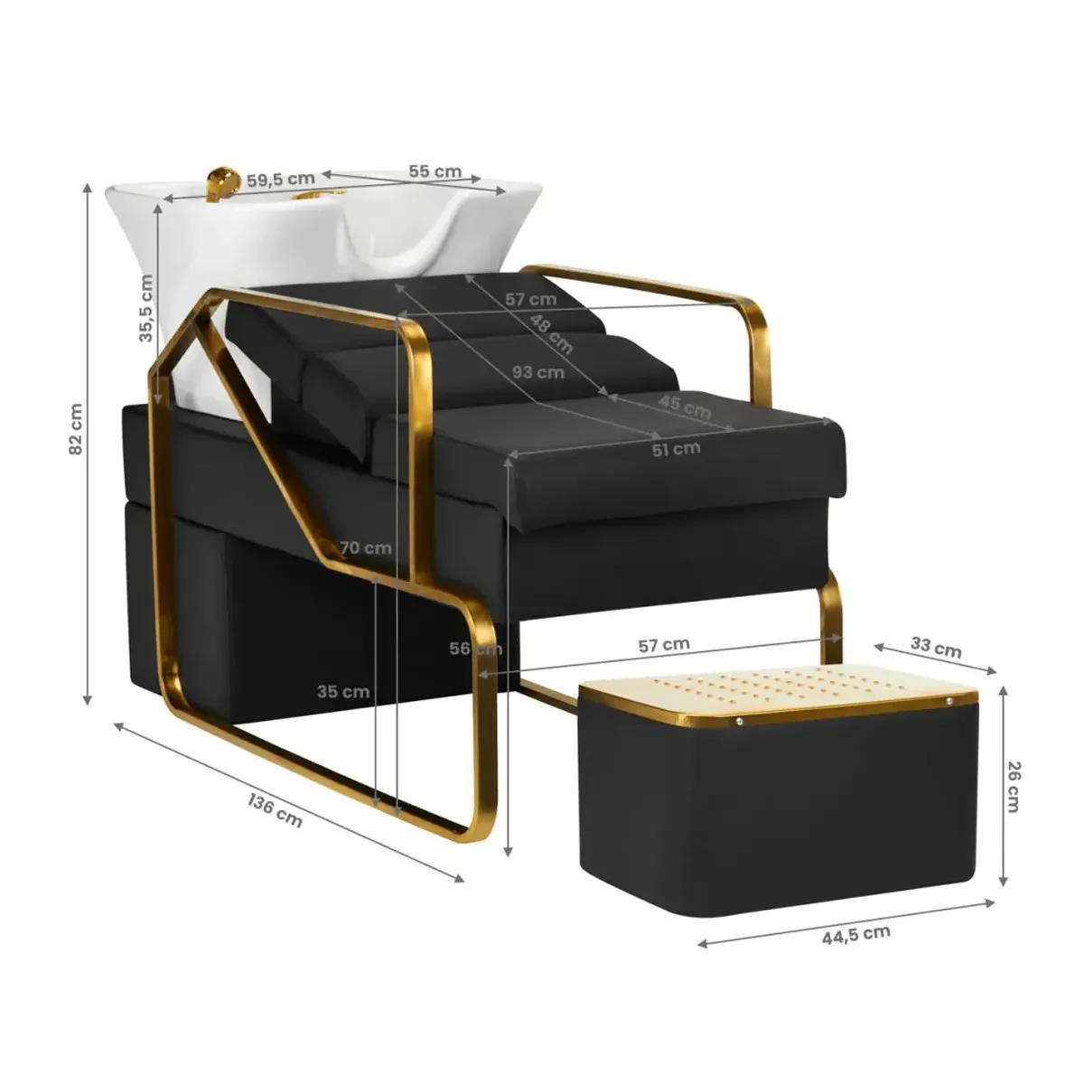 Lavaggio Parrucchiere Sceslong con Sgabello Poggiapiedi Nero e Oro