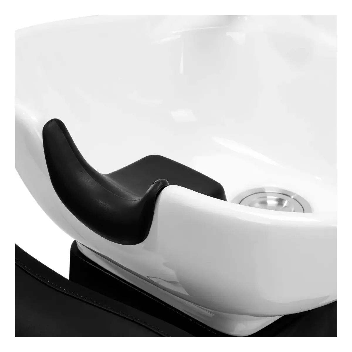 La profondità della bacinella in ceramica nei toni del bianco consente di svolgere in modo comodo ed efficace un'ampia gamma di servizi di parrucchiere , evitando schizzi eccessivi di acqua e prodotti utilizzati durante il trattamento. Il materiale utilizzato rende la bacinella durevole, resistente allo scolorimento e ai graffi e molto facile da pulire. Un collare opportunamente profilato offre comfort durante il lavaggio dei capelli. L'uso di uno speciale supporto nella bacinella garantisce un corretto sostegno della testa, in modo che il suo peso non gravi sul collo. L'innovativa soluzione previene tensioni e fastidi nella zona del collo e garantisce un elevato comfort , anche durante i trattamenti lunghi. Inoltre, grazie al comodo rivestimento in plastica nera , il cliente non avvertirà la sgradevolezza della fredda superficie in ceramica.