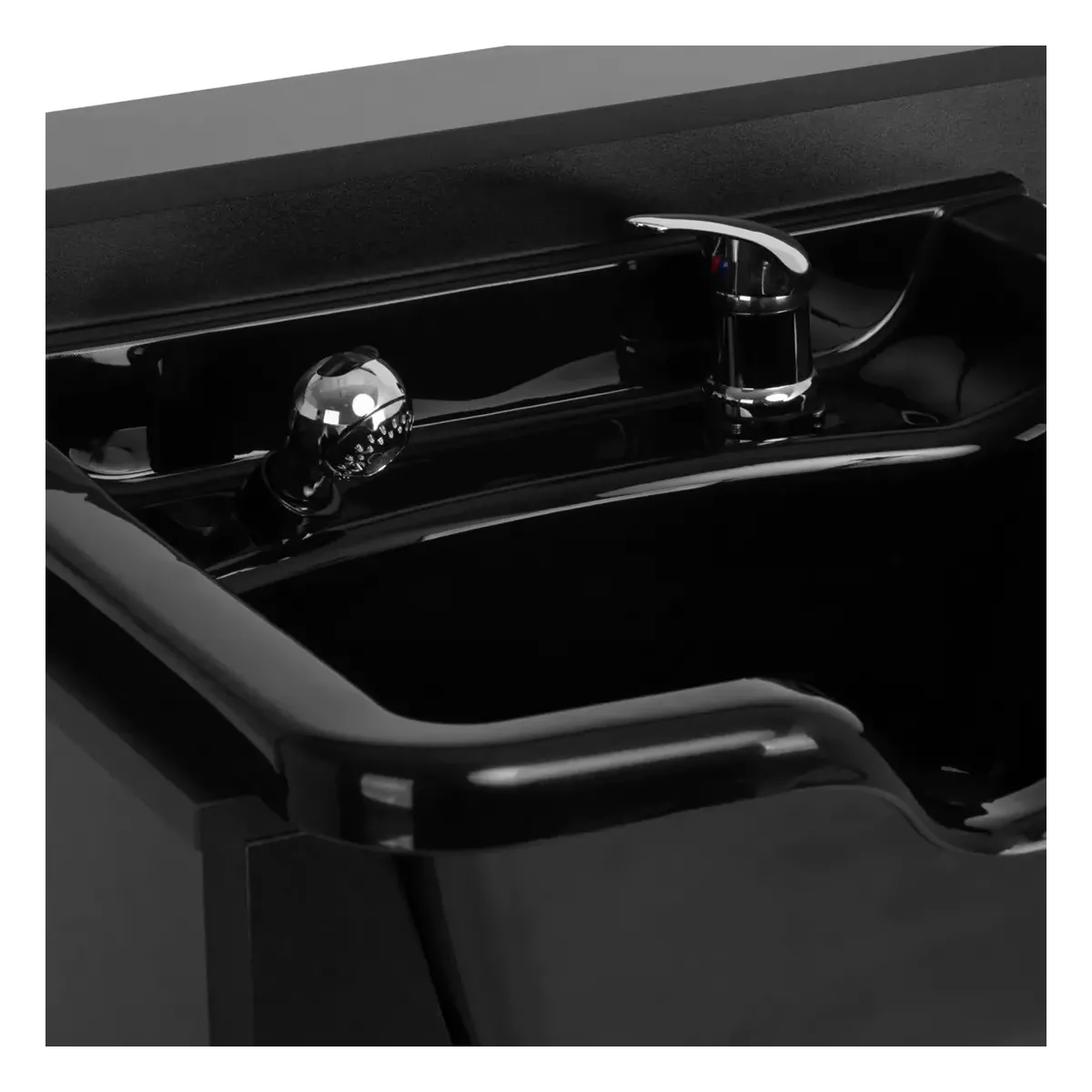 Lavello in ceramica nera: Il lavello profondo e resistente in ceramica nera offre un ampio spazio per lavare i capelli e risciacquare i prodotti. Il colore nero aggiunge un tocco di eleganza e modernità.