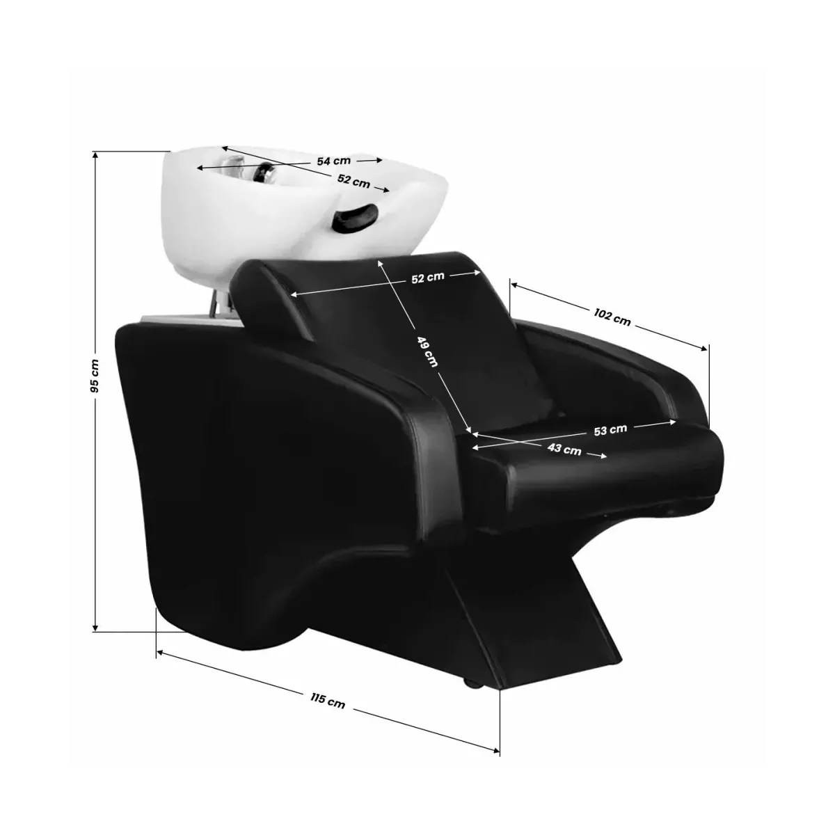 Dimensioni Ottimizzate: Le dimensioni compatte (vedi dettagli nelle immagini) rendono questa unità di lavaggio adatta anche a saloni con spazi limitati, senza compromettere il comfort e la funzionalità.