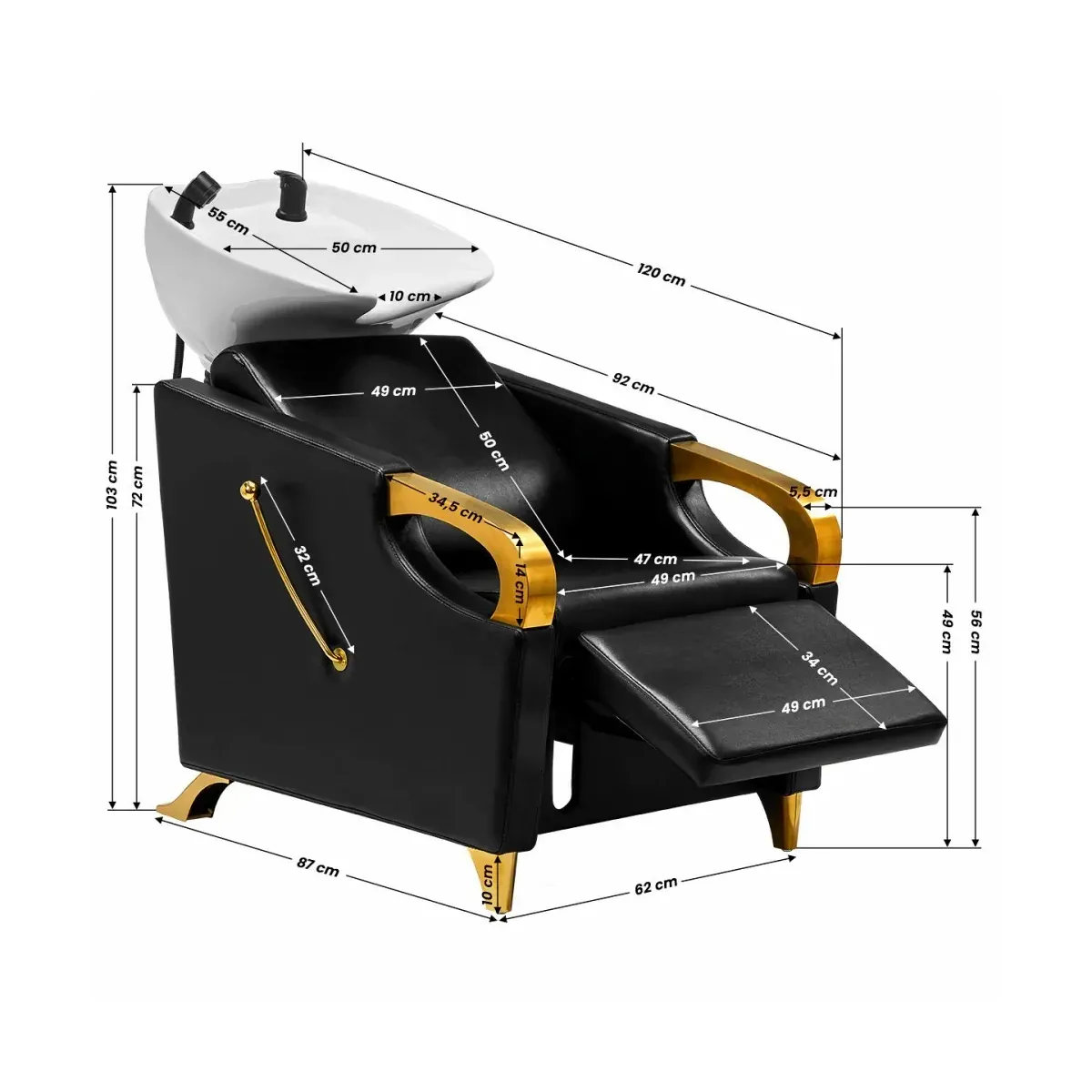 Lavaggio Parrucchiere con Alzagambe Nero e Oro Luxury Gold: Eleganza e Comfort per un'Esperienza di Lusso