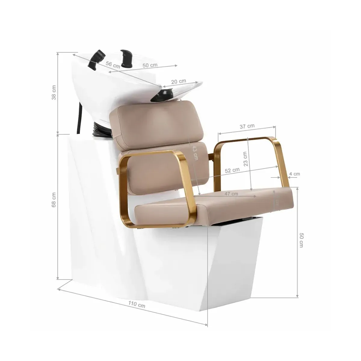 Lavaggio Parrucchiere Begie e oro Eleva lo stile del tuo salone con il nostro esclusivo Lavatesta Parrucchiere Begie e Oro, un connubio perfetto tra design luxury e funzionalità. La sua elegante combinazione di colori begie e oro, arricchita da finiture dorate di pregio, catturerà l'attenzione dei tuoi clienti e creerà un'atmosfera di sofisticatezza.