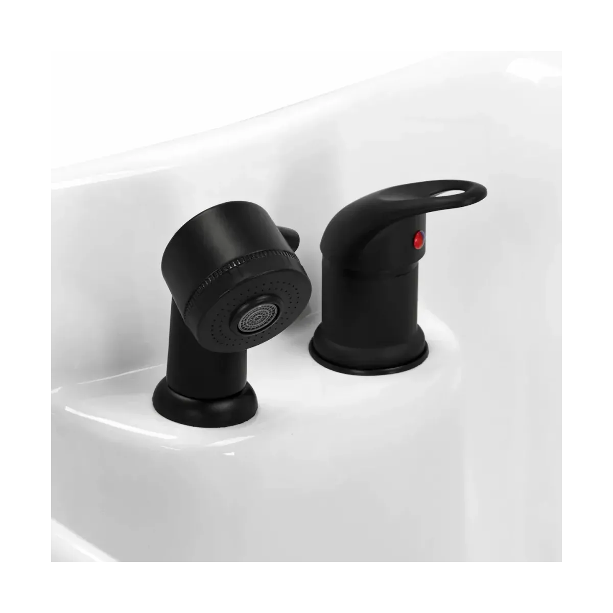 Questo lavatesta si distingue per il suo design moderno e sofisticato, con una combinazione di colori nero e oro che aggiunge un tocco di lusso al tuo salone. Le linee pulite e la forma ergonomica offrono comfort sia per il cliente che per il parrucchiere.