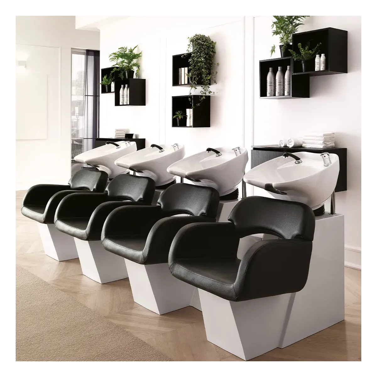 Lavaggi per Parrucchieri in Offerta dal design lineare e moderno con seduta dallo stile tondeggiante, ideale per arredare o rinnovare con stile il tuo salone.
