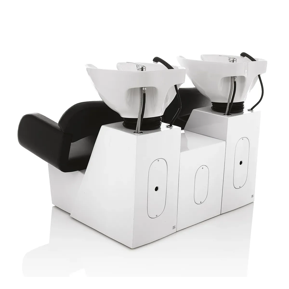 I lavaggi parrucchiere hanno una struttura in acciaio formata da un design a blocchi con verniciatura tra i colori bianco o nero, si possono collegare tra loro con un distanziatore anch'esso disponibile in uno dei due colori e acquistabile con un supplemento di euro 140,00€. Questo permette di disporre i lavaggi in un unico blocco comodo e funzionale, inoltre sarebbe anche un'ulteriore comodità per appoggiare i prodotti come shampoo e altri trattamenti per capelli.