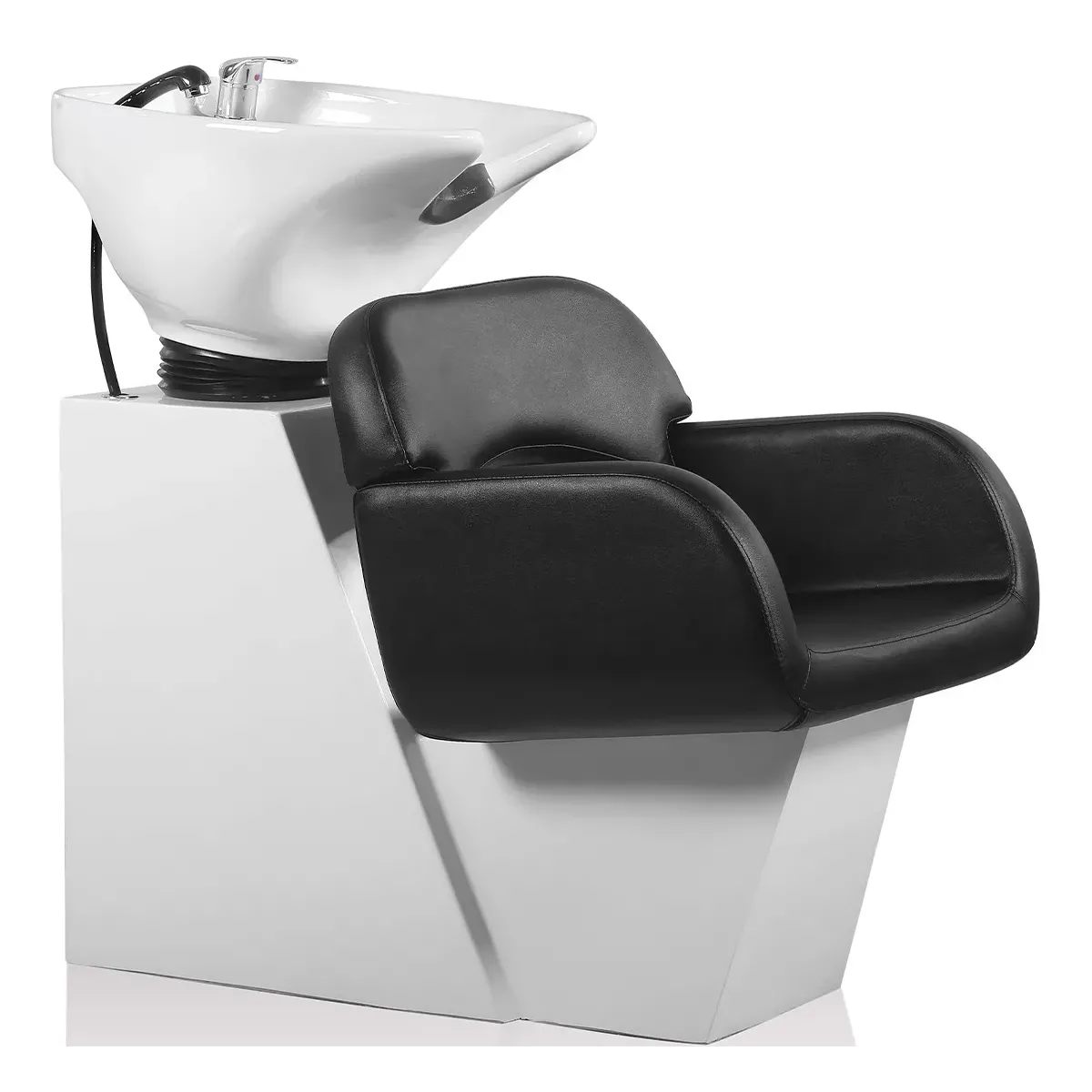 I lavatesta professionali Sage sono dotati di vasca in ceramica bianca con ammortizzatore basculante completa di salvacollo che consentirà alla cliente di poggiare la testa comodamente ed assumere una corretta posizione durante il lavaggio capelli, inoltre è completa di doccetta con miscelatore in acciaio inox allungabile fino a 120 cm e piletta di scarico.