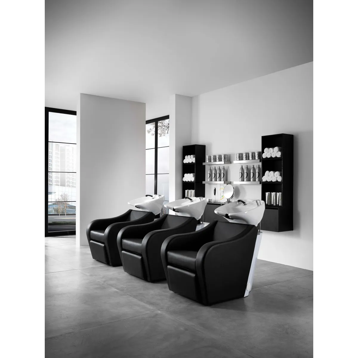Il lavatesta Omega Plus offre la soluzione ideale per tutte le esigenze: classe, funzionalità e attenzione ai dettagli si fondono per dare a ogni salone uno stile inimitabile. La seduta imbottita e il lavabo reclinabile si adattano all’altezza del cliente in modo confortevole, donando relax durante il lavaggio il tutto accompagnato dall'alzagambe che permette al cliente di rilassarsi a pieno. Il design arrotondato e la vasca ergonomica si adattano ad ogni tipo di salone e arredamento arricchendolo di classe e funzionalità.