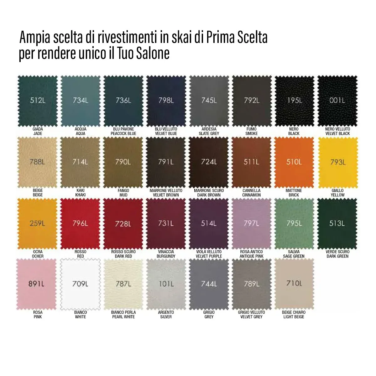 Il rivestimento in Sky professionale ignifugo e ultra-resistente è disponibile in oltre 30 colorazioni, offrendo la possibilità di personalizzare il lavaggio e integrarlo perfettamente nello stile del proprio salone. Inoltre, le combinazioni bicolore rendono il modello ancora più esclusivo, permettendo di creare un ambiente elegante, accogliente e in linea con l’identità del brand.