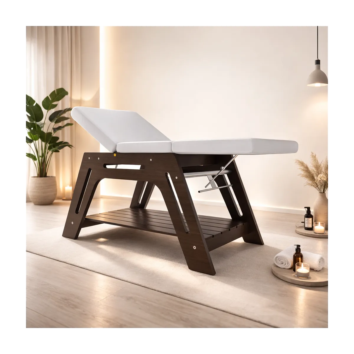 Materiali: Costruito interamente in legno di alta qualità, disponibile in diverse finiture: betulla, faggio naturale, ciliegio, noce e wengé. Questo ti permette di scegliere il colore che meglio si adatta all'arredamento del tuo centro estetico.