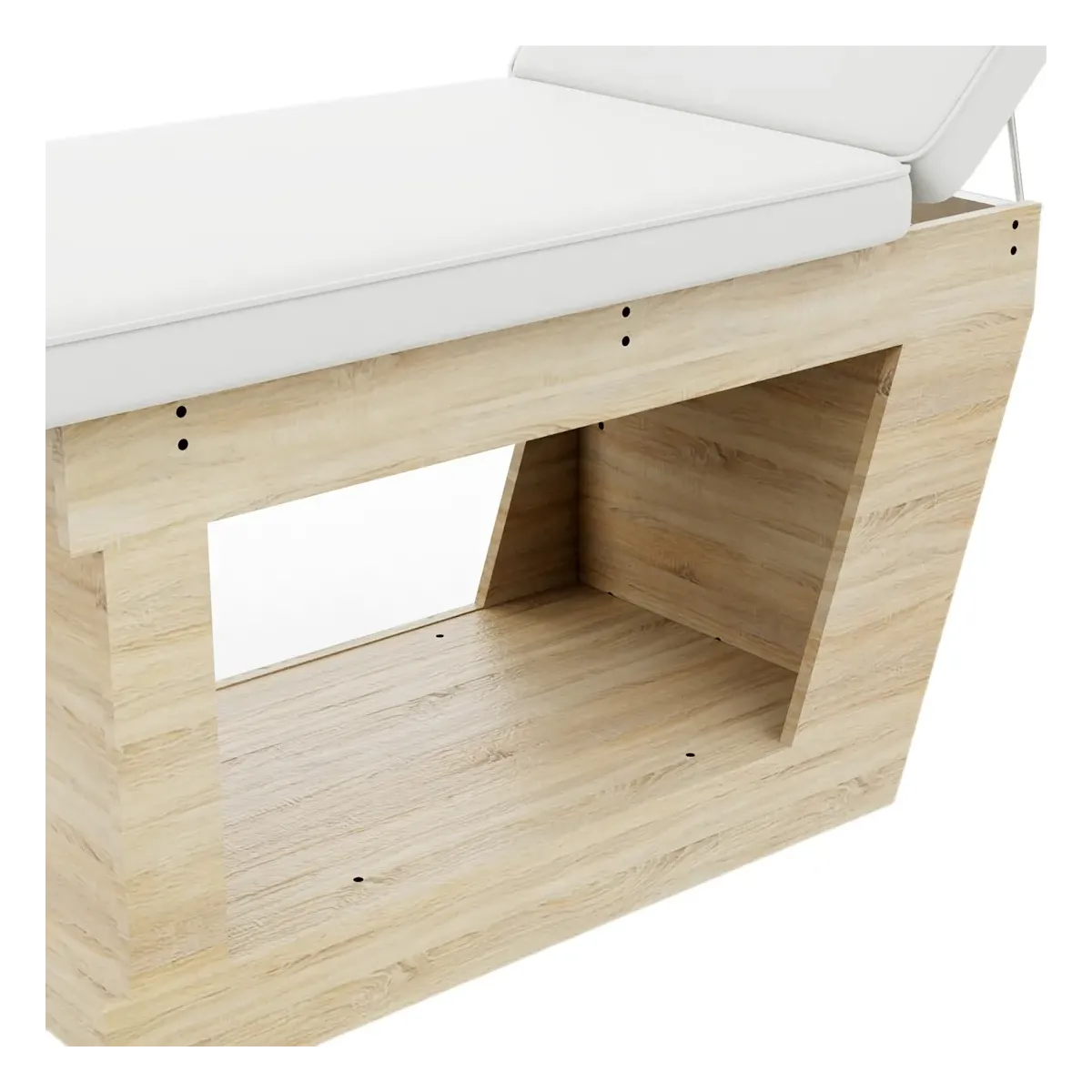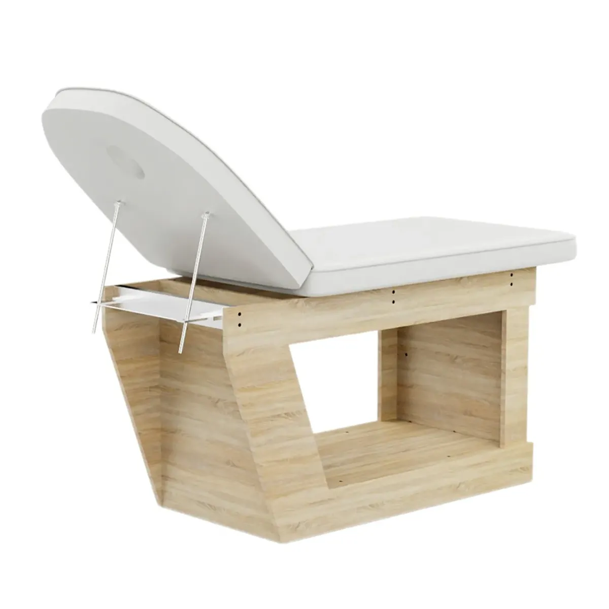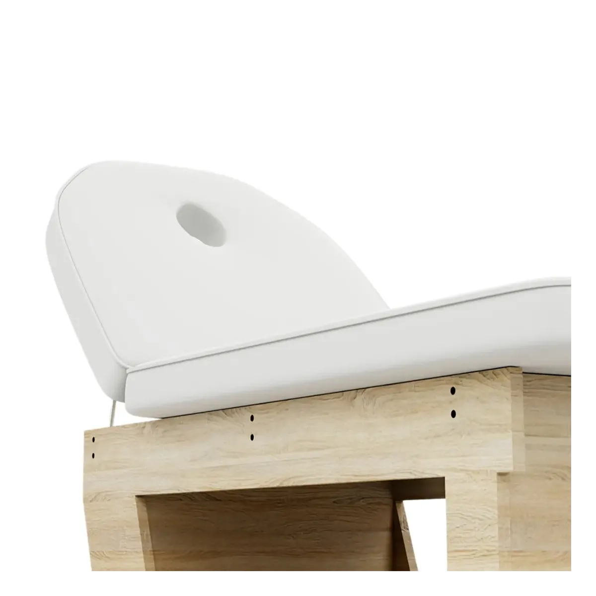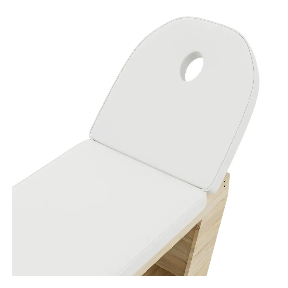 La superficie imbottita con ecopelle di alta qualità è facile da pulire e offre un'ottima comodità grazie allo spessore generoso del cuscino. Il design ergonomico include uno schienale leggermente reclinato con foro facciale per un comfort ottimale in qualsiasi posizione.