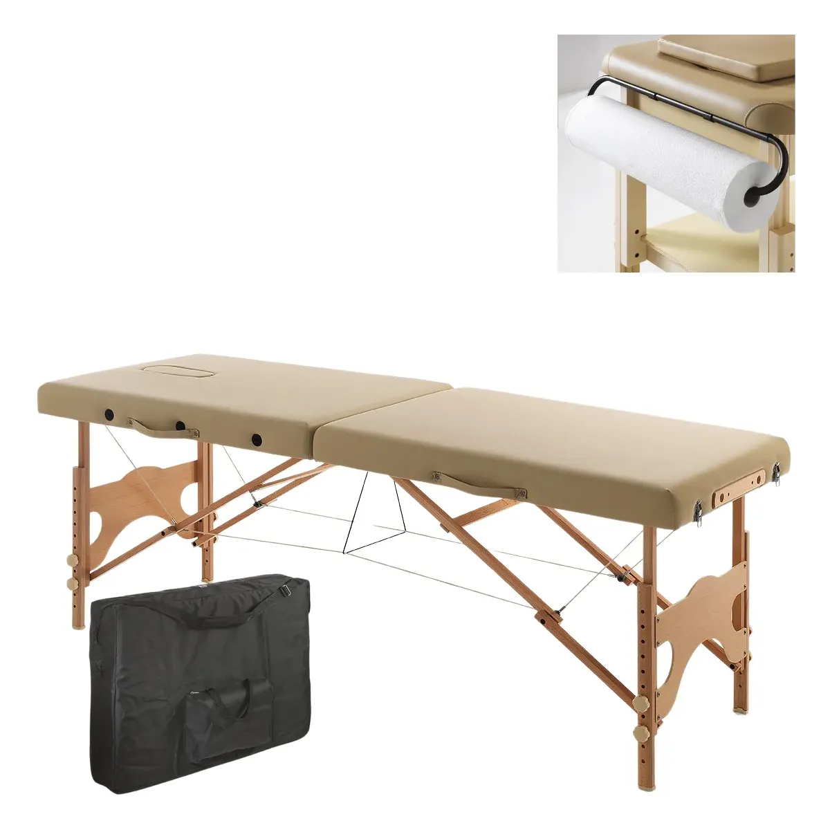 Lettino Massaggio Legno Professionale Portatile con Asta Porta Rotolo