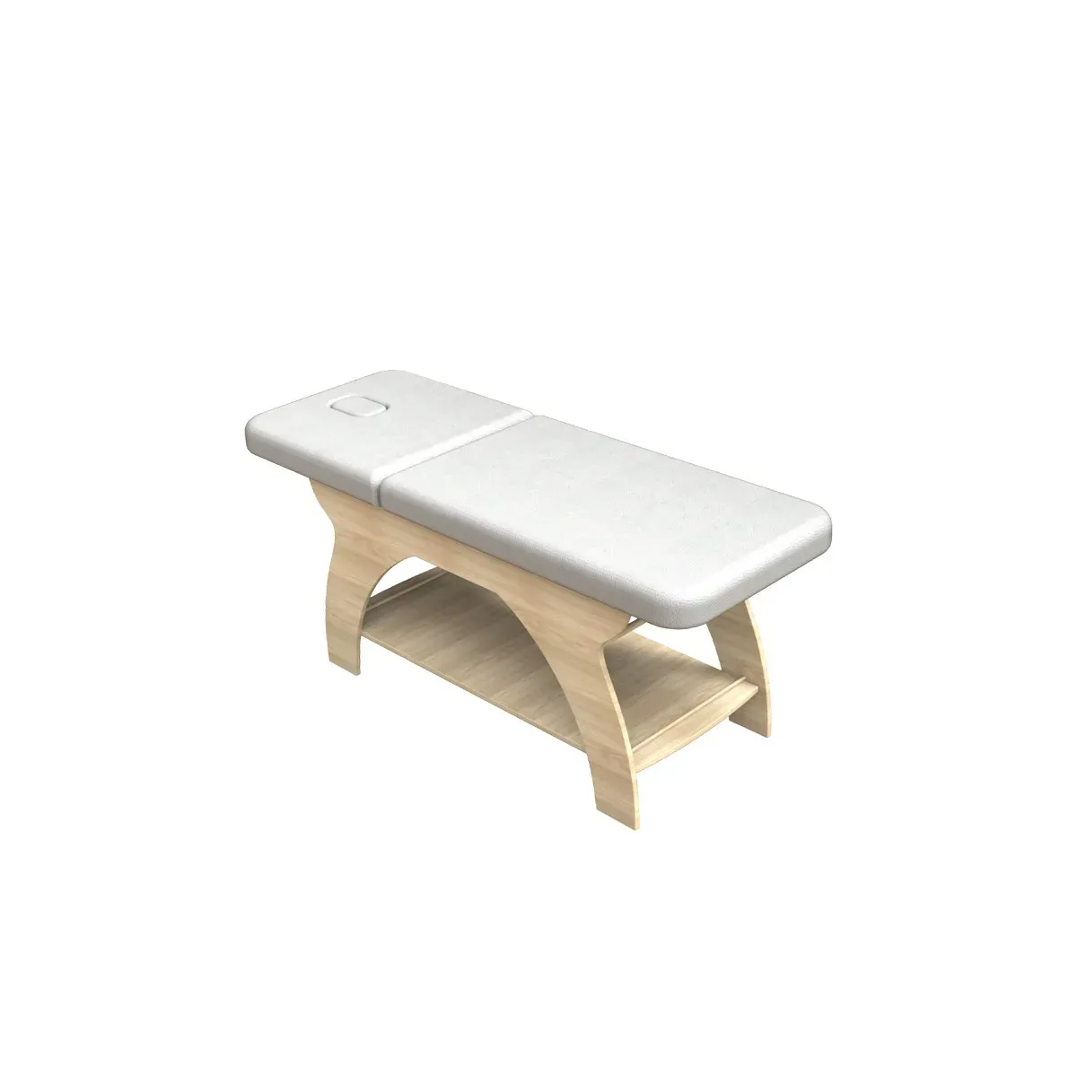 Realizzato con una struttura in legno resistente e rivestito con materiale di alta qualità, facile da pulire e mantenere. La superficie imbottita assicura un sostegno confortevole, mentre il pratico foro per il viso rende il lettino adatto anche per trattamenti in posizione prona.