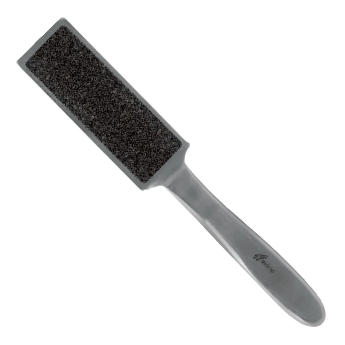 Indispensabile raspa per il pedicure per chi si preoccupa dell'igiene dei propri piedi. Raspa in acciaio con striscette abrasive intercambiabili monouso.