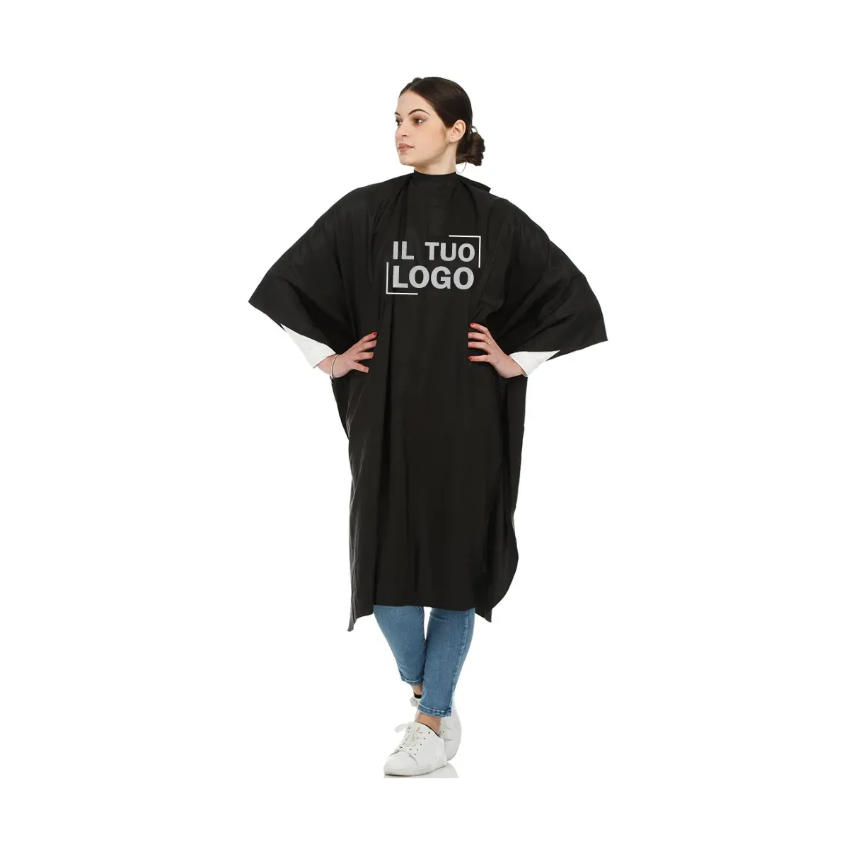 Grazie alla sua versatilità e alla possibilità di personalizzazione, questa mantella è l’ideale per chi desidera un tocco distintivo per il proprio salone hair.
