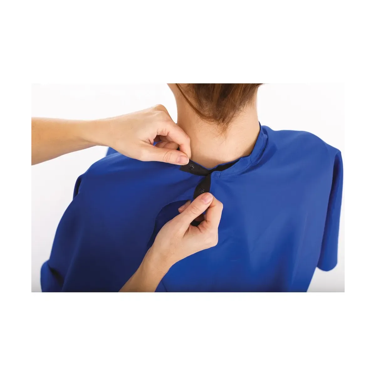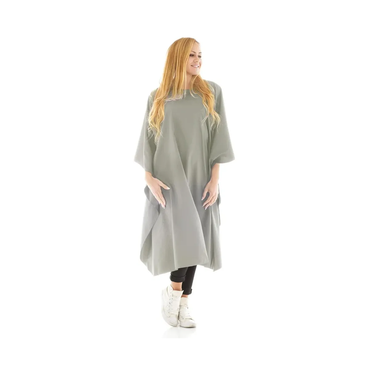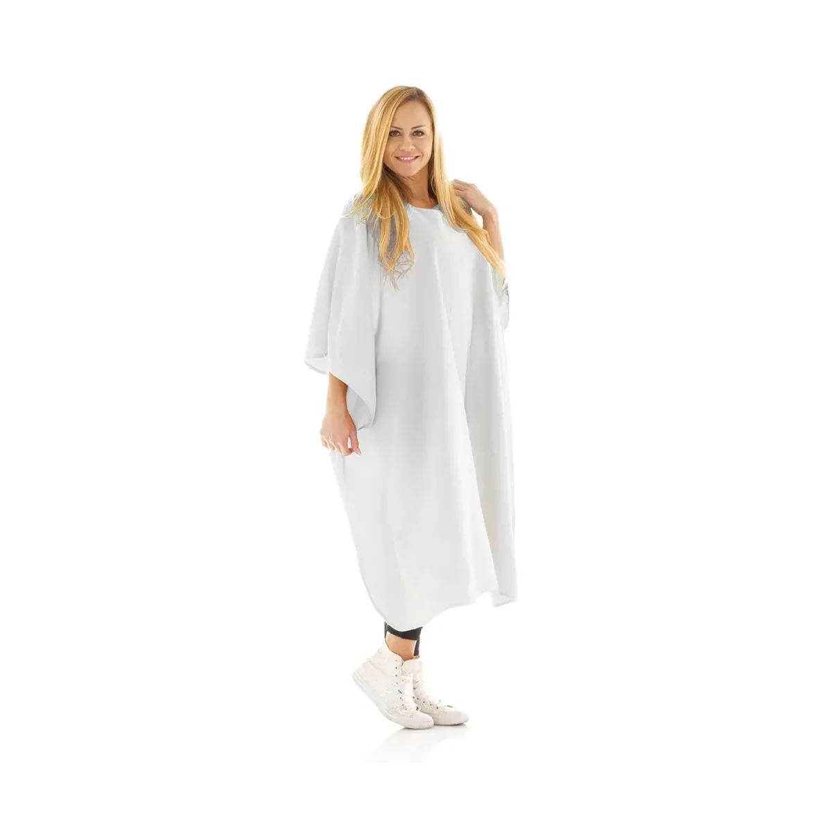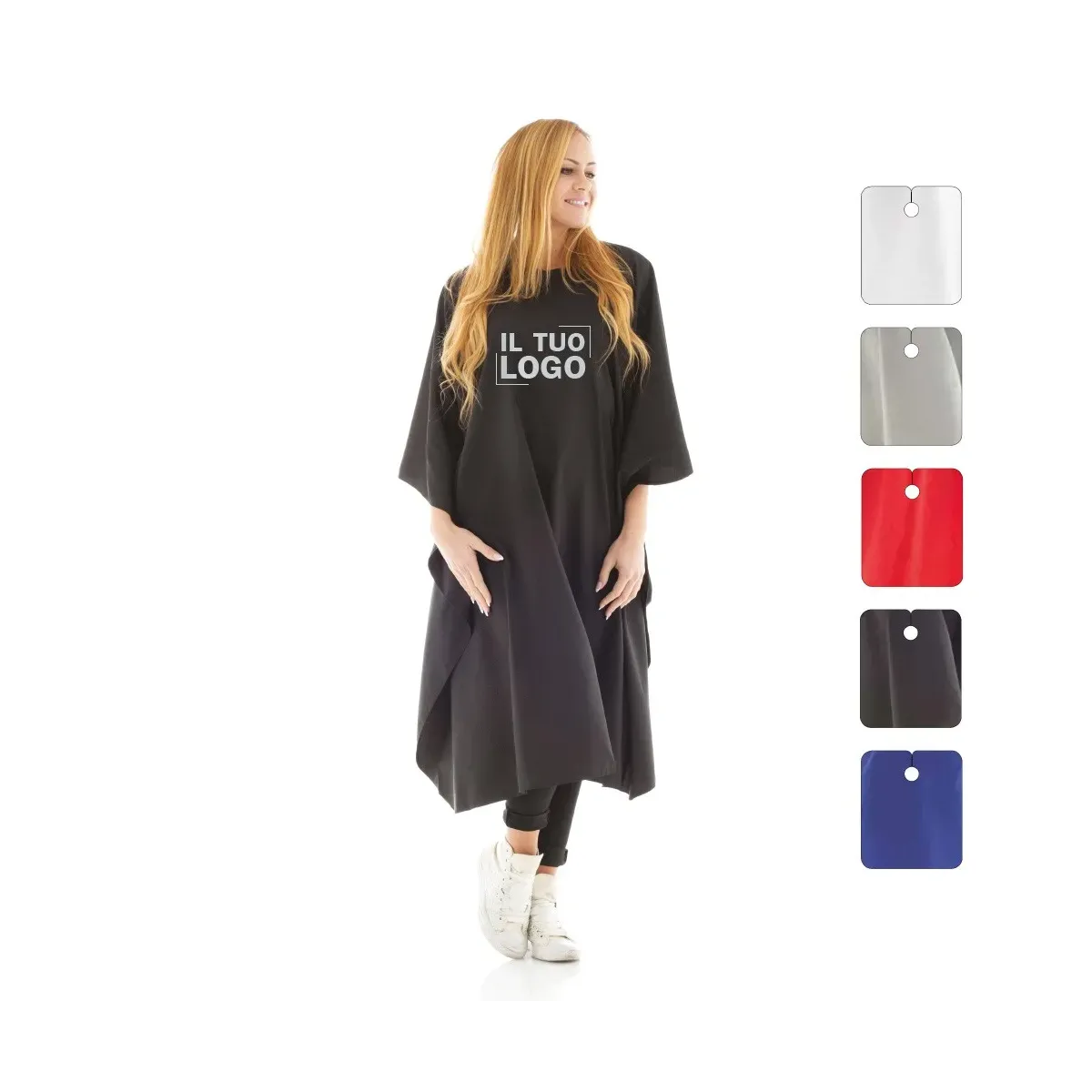 Mantella Parrucchiere Personalizzata realizzata in poliestere idrorepellente ad alta densità, molto apprezzato dai professionisti dell'hairstylist poiché agevola lo scorrimento dei capelli e dell'acqua essendo anche un materiale che impermeabile.