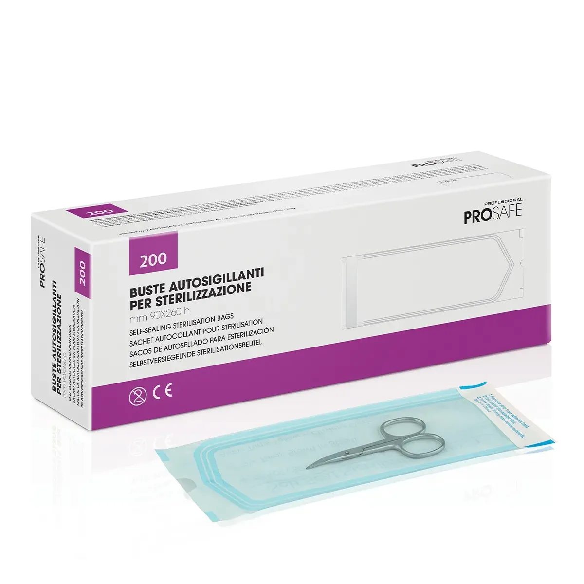 Le buste autosigillanti PROSAFE sono la scelta ideale per i professionisti dell’estetica, della podologia, e del settore medicale che necessitano di uno strumento sicuro e pratico per la sterilizzazione.