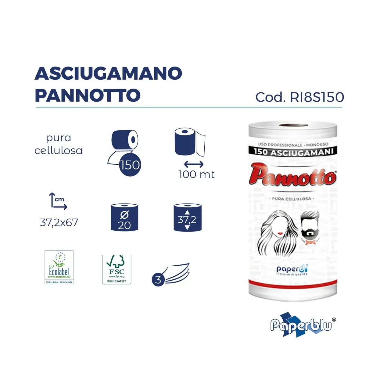 Pannotto 150 Asciugamani Monouso 3 veli Pura Cellulosa Paperdi (MAX 6 Pz.)