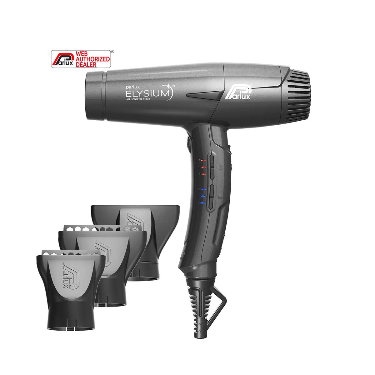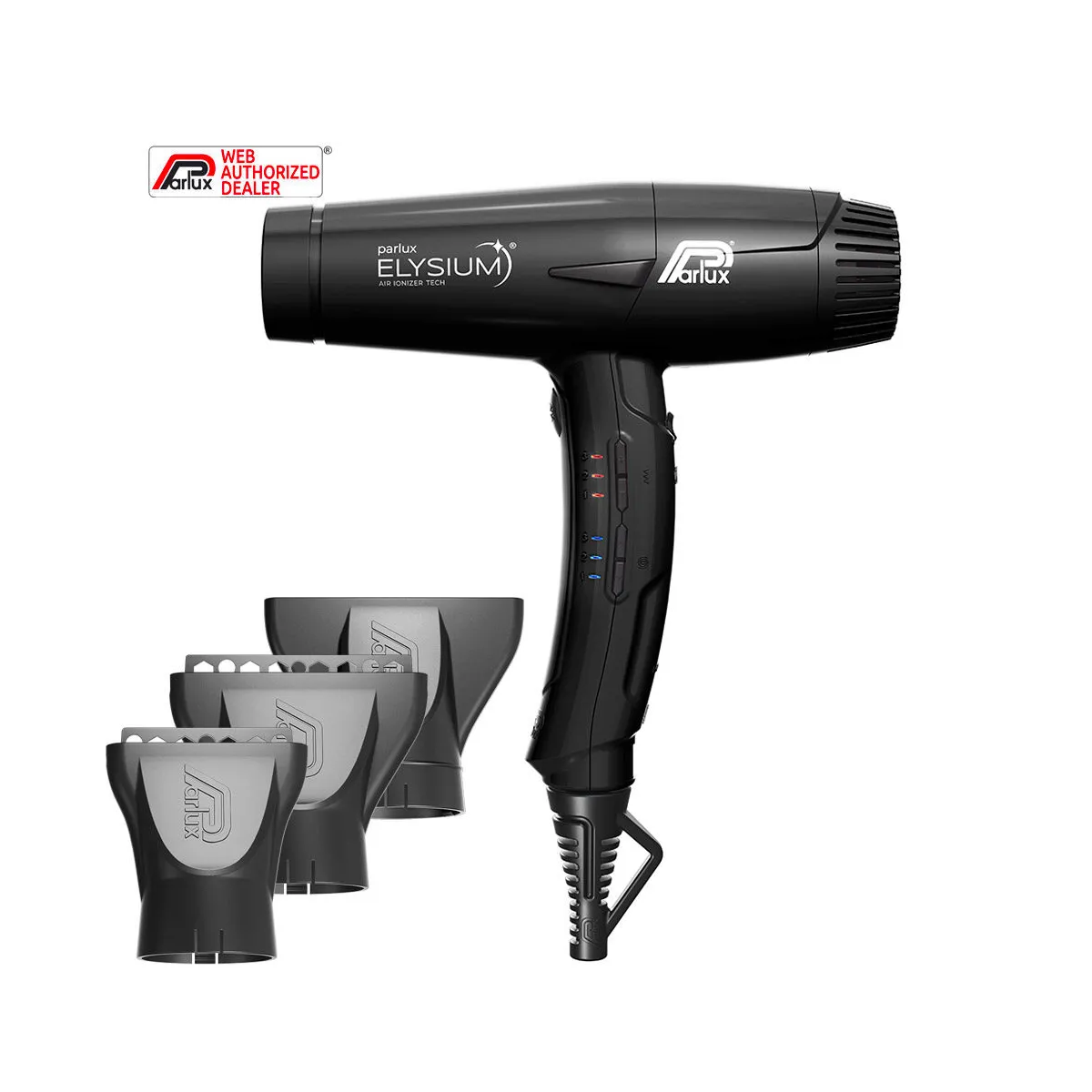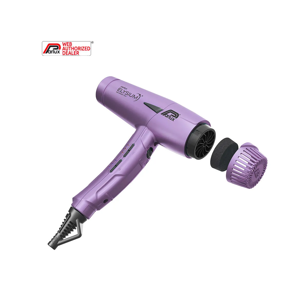 Grazie alla Tecnologia Air Ionizer Tech, Parlux ELYSIUM emette ioni negativi accelerando il processo di asciugatura e neutralizzando l'elettricità statica.