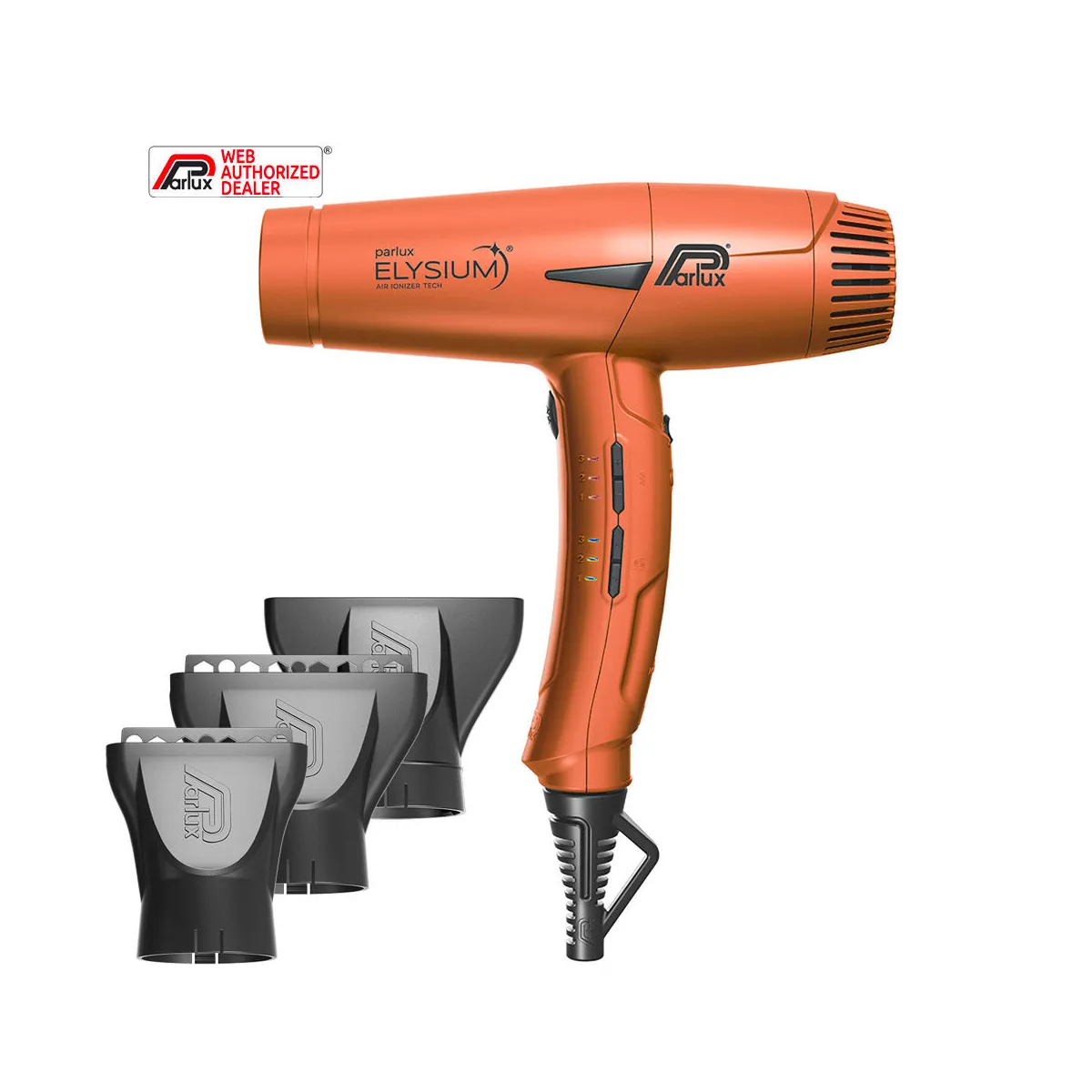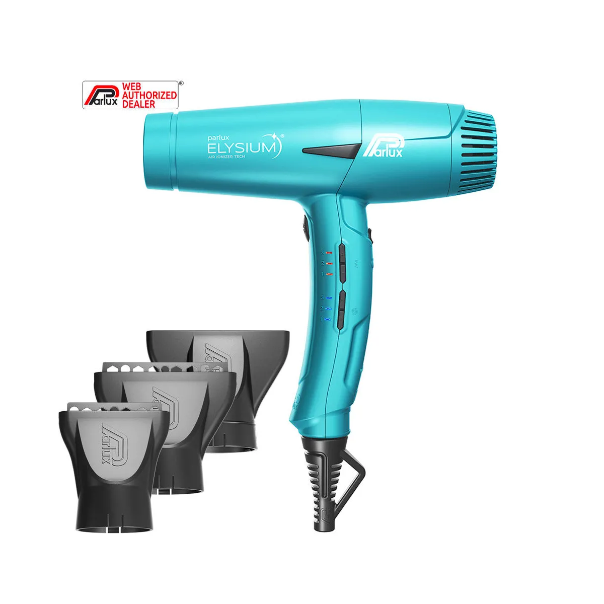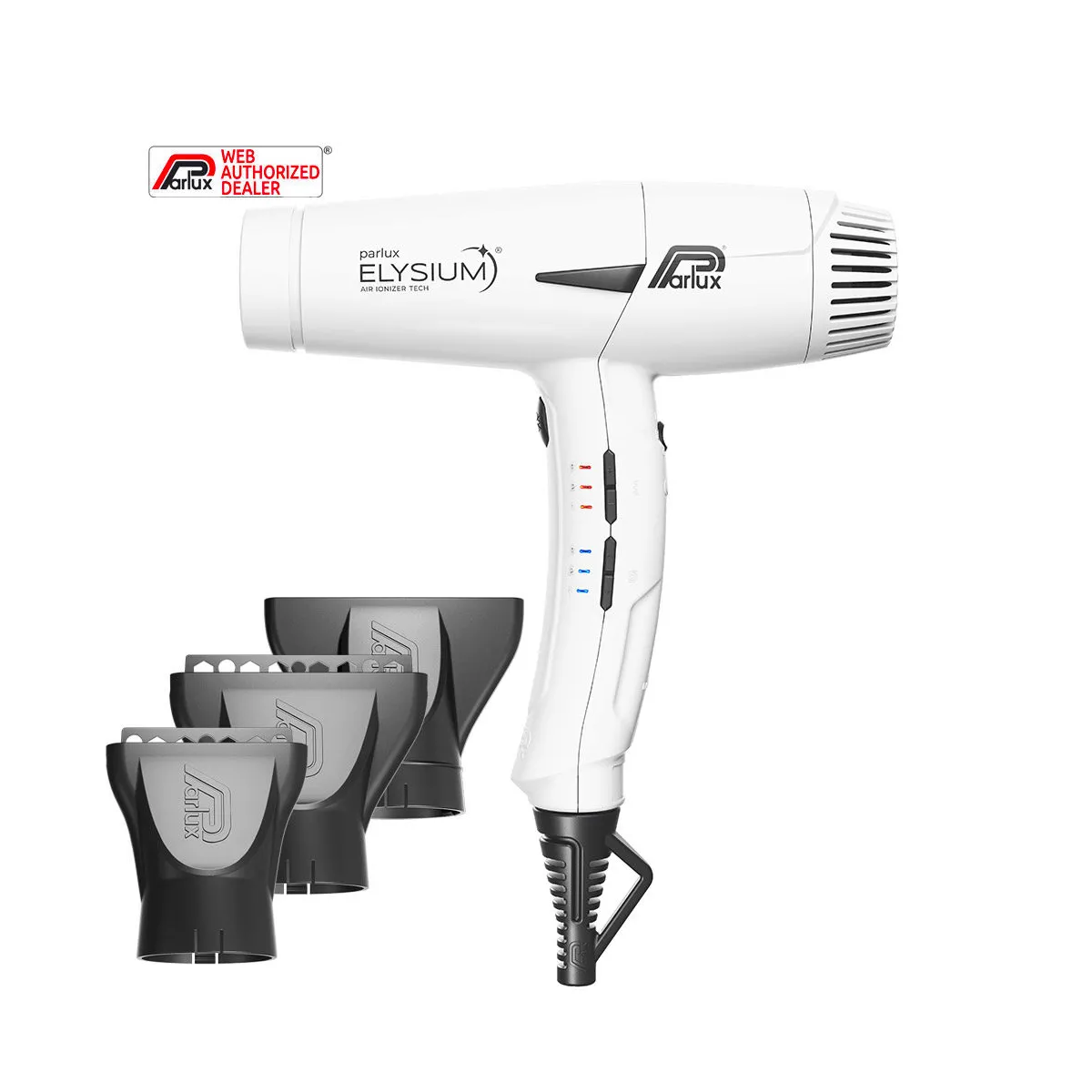 Grazie alla Tecnologia Air Ionizer Tech, Parlux ELYSIUM emette ioni negativi accelerando il processo di asciugatura e neutralizzando l'elettricità statica.