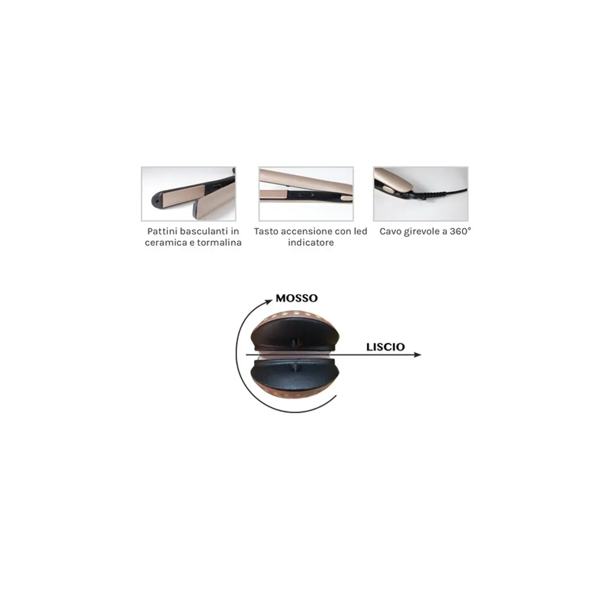 Piastra per Capelli Lisci e Mossi in Ceramica Tormalina