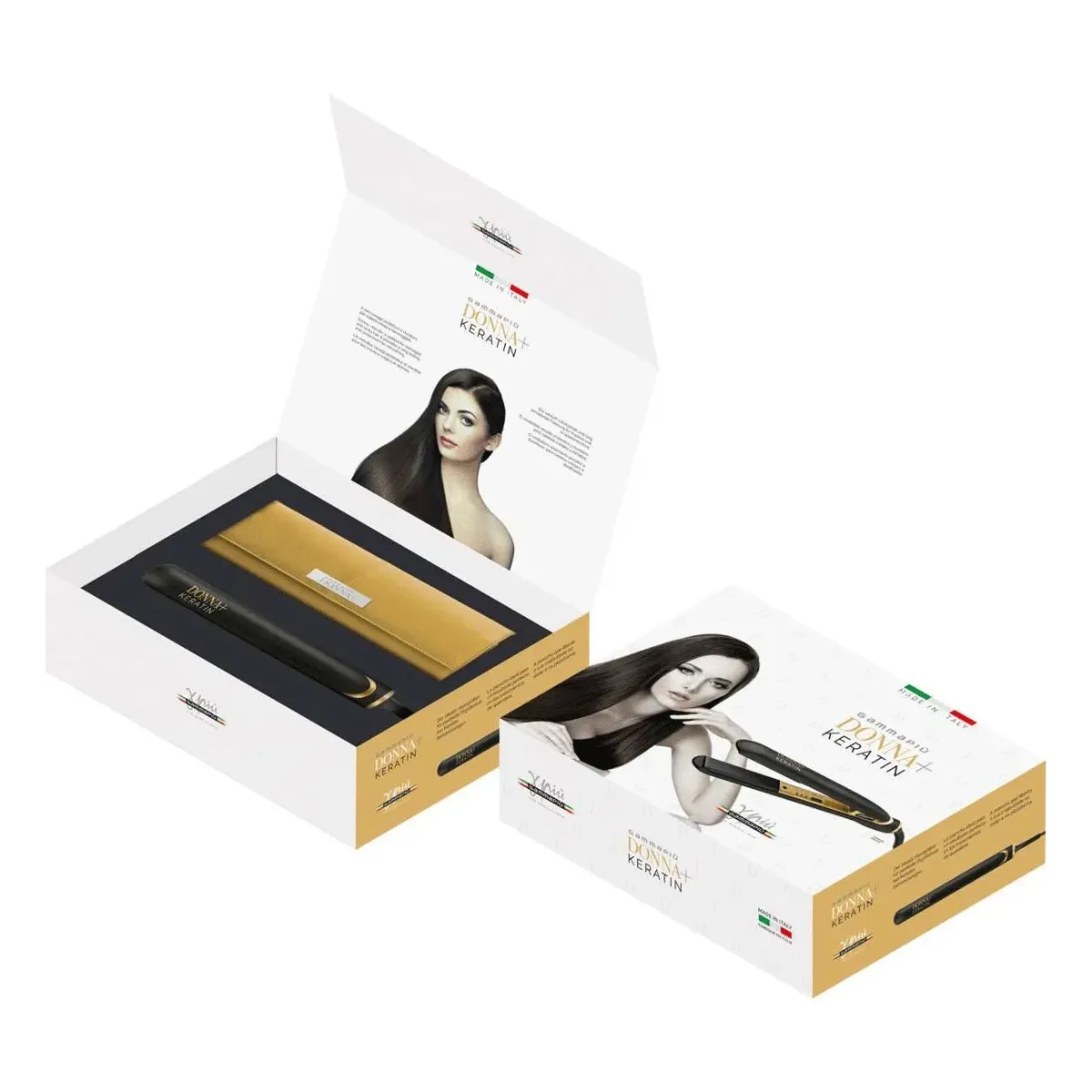 La Donna+ Keratin di Gamma Più è la piastra professionale specificamente progettata per trattamenti alla cheratina. Grazie ai suoi piatti in ceramica resistenti ad alte temperature, assicura un riscaldamento uniforme e costante fino a 240°C, temperatura ideale per i trattamenti chimici di lisciatura.