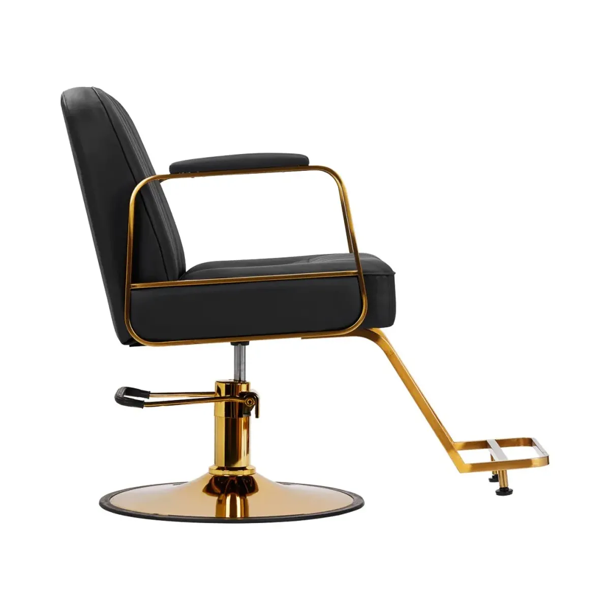 Poltrona da Parrucchiere Professionale con Poggiapiedi e Base Tonda Oro