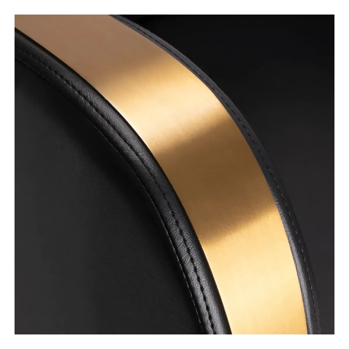 La poltrona si distingue per il suo design elegante e moderno. Il rivestimento in ecopelle nera di alta qualità conferisce un tocco di classe, mentre i dettagli dorati sulla base quadrata aggiungono un elemento di lusso e raffinatezza. L'abbinamento cromatico nero e oro si adatta facilmente a qualsiasi tipo di arredamento, dal classico al contemporaneo.