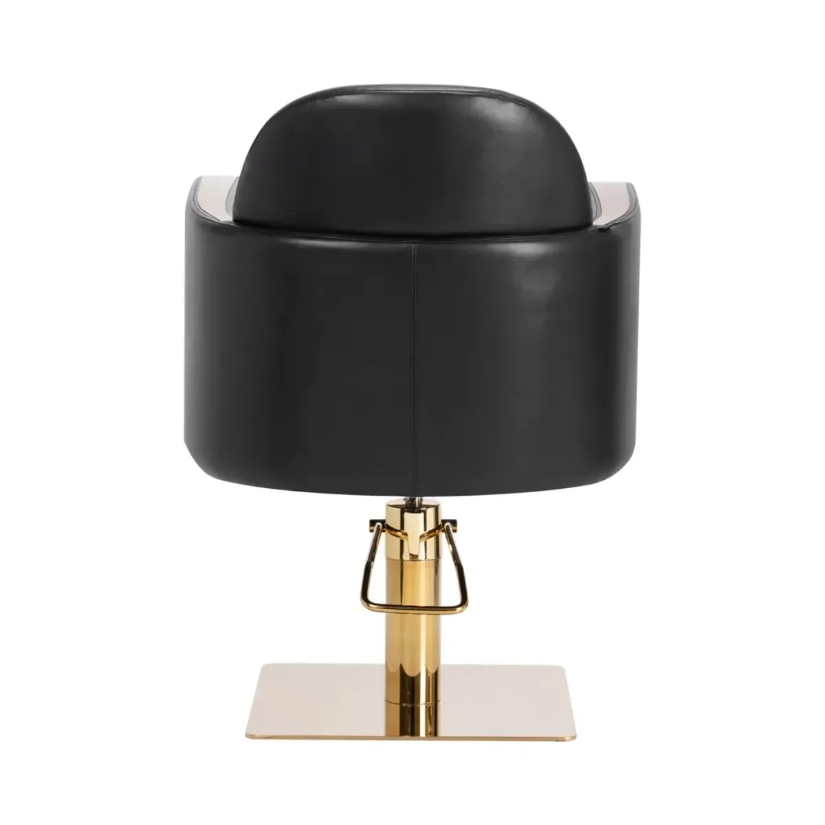 Poltrona per Parrucchiere Nera con Base Quadrata e Dettagli Oro
