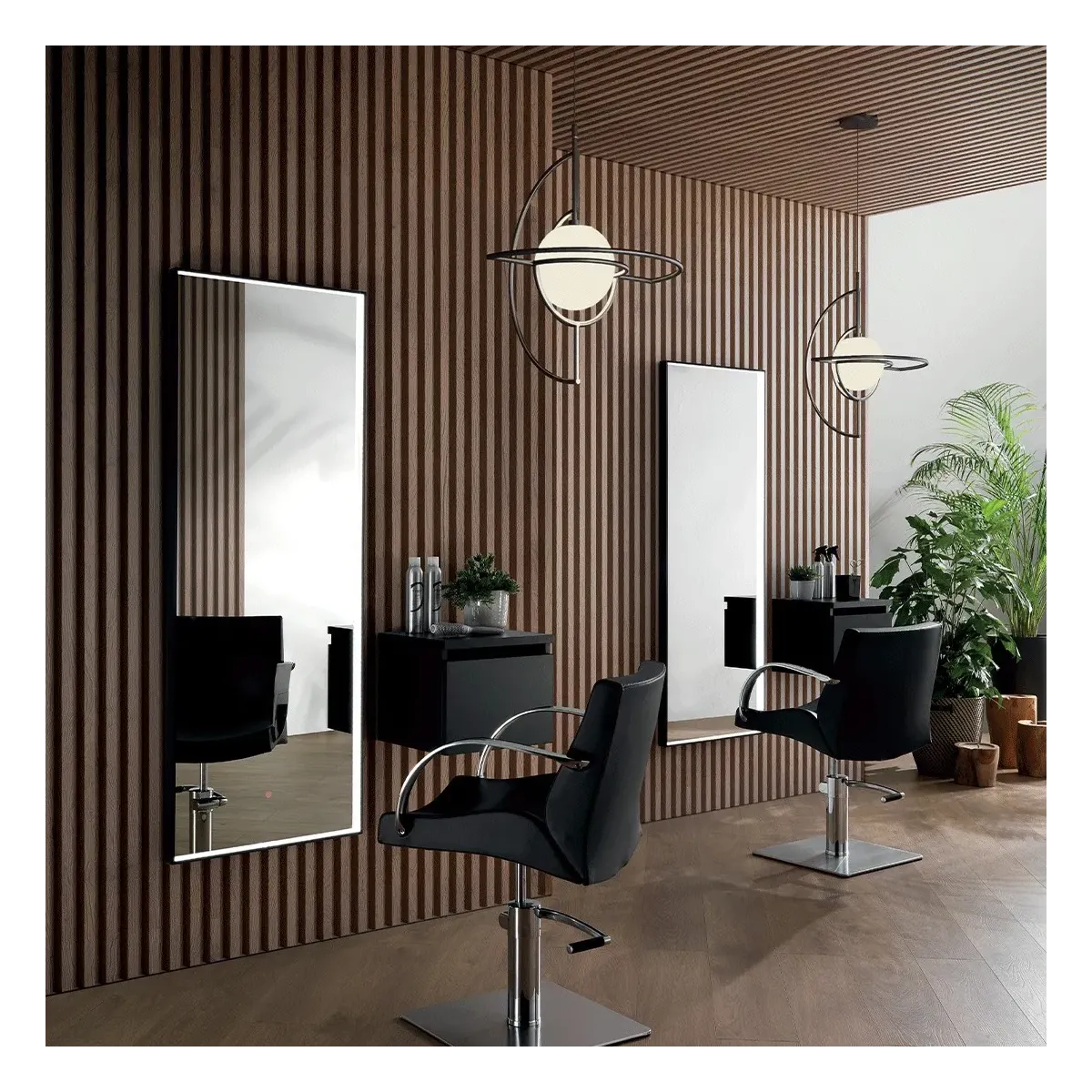 Inoltre potresti completare il tuo arredamento parrucchiere con un tocco di stile scegliendo queste postazioni complete di specchi abbinati alla poltrona Moon, li trovi cliccando in foto.