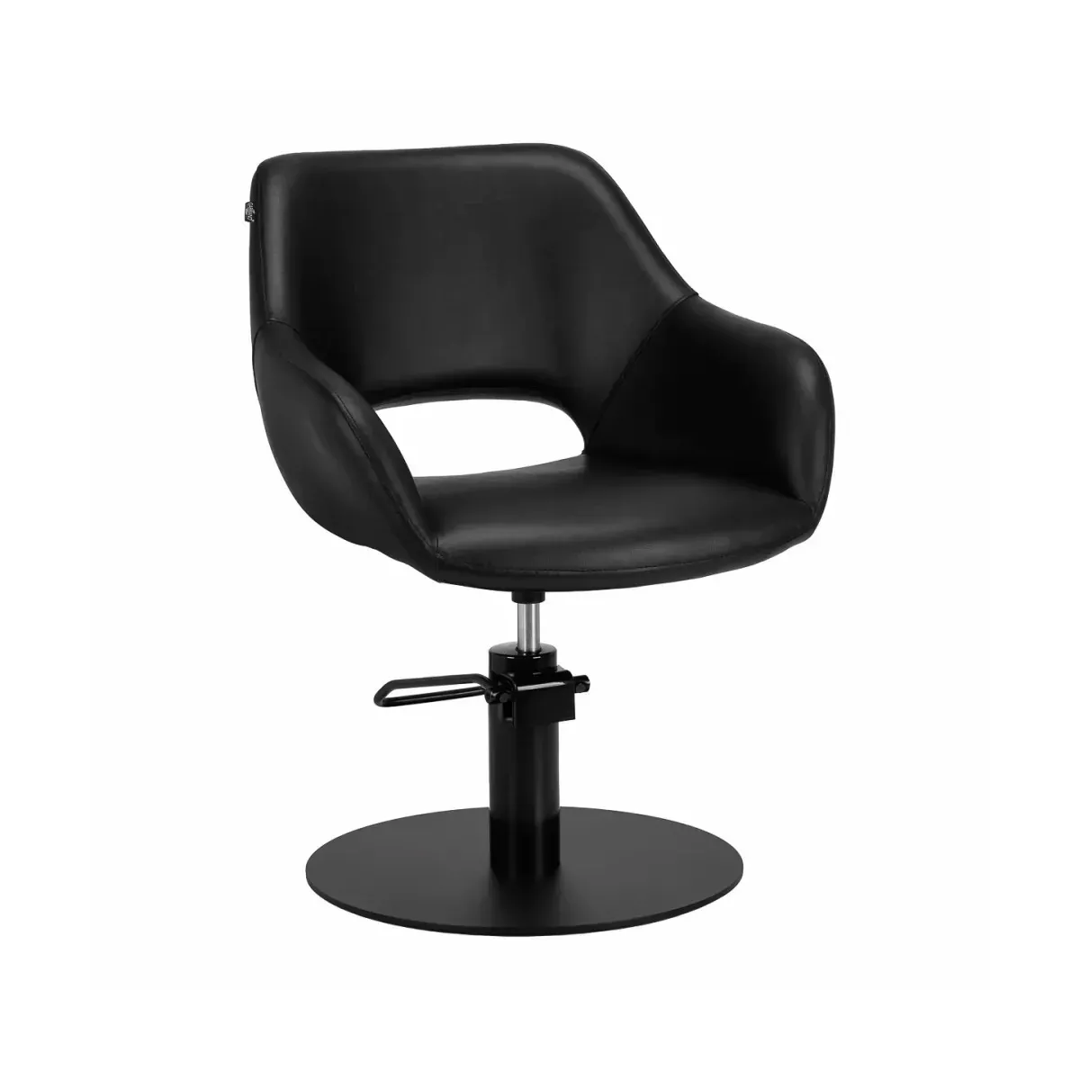 Poltrona per Parrucchieri Nera Total Black con Base Rotonda New