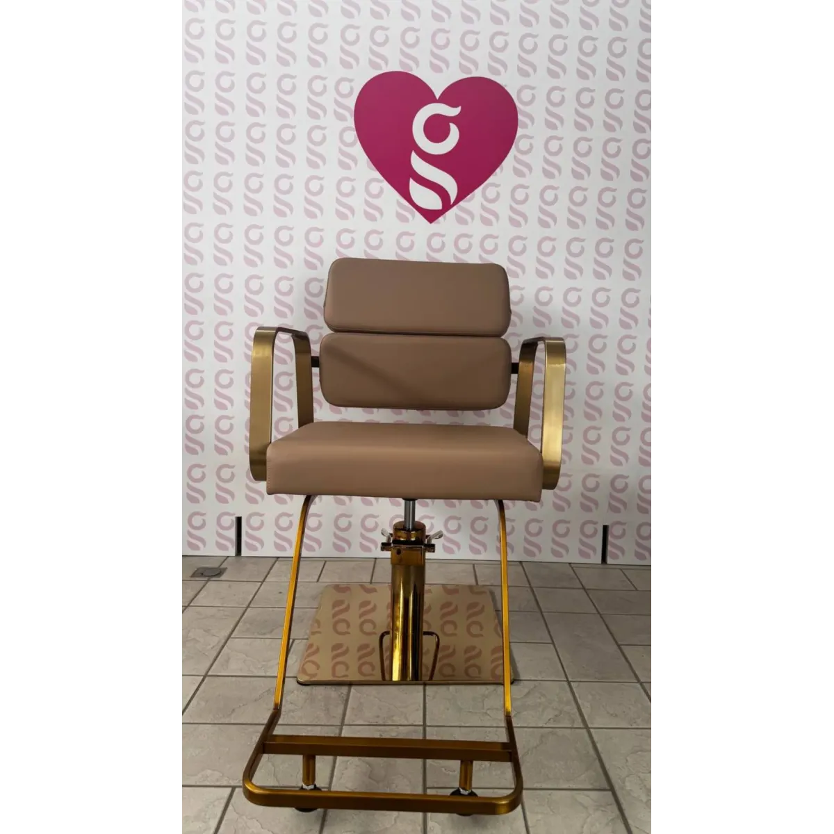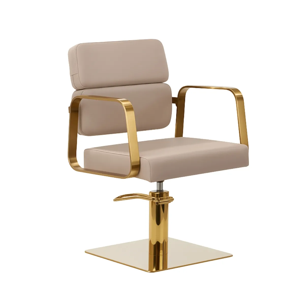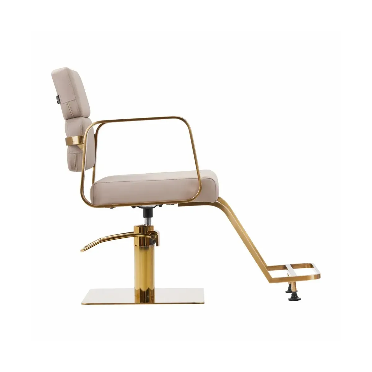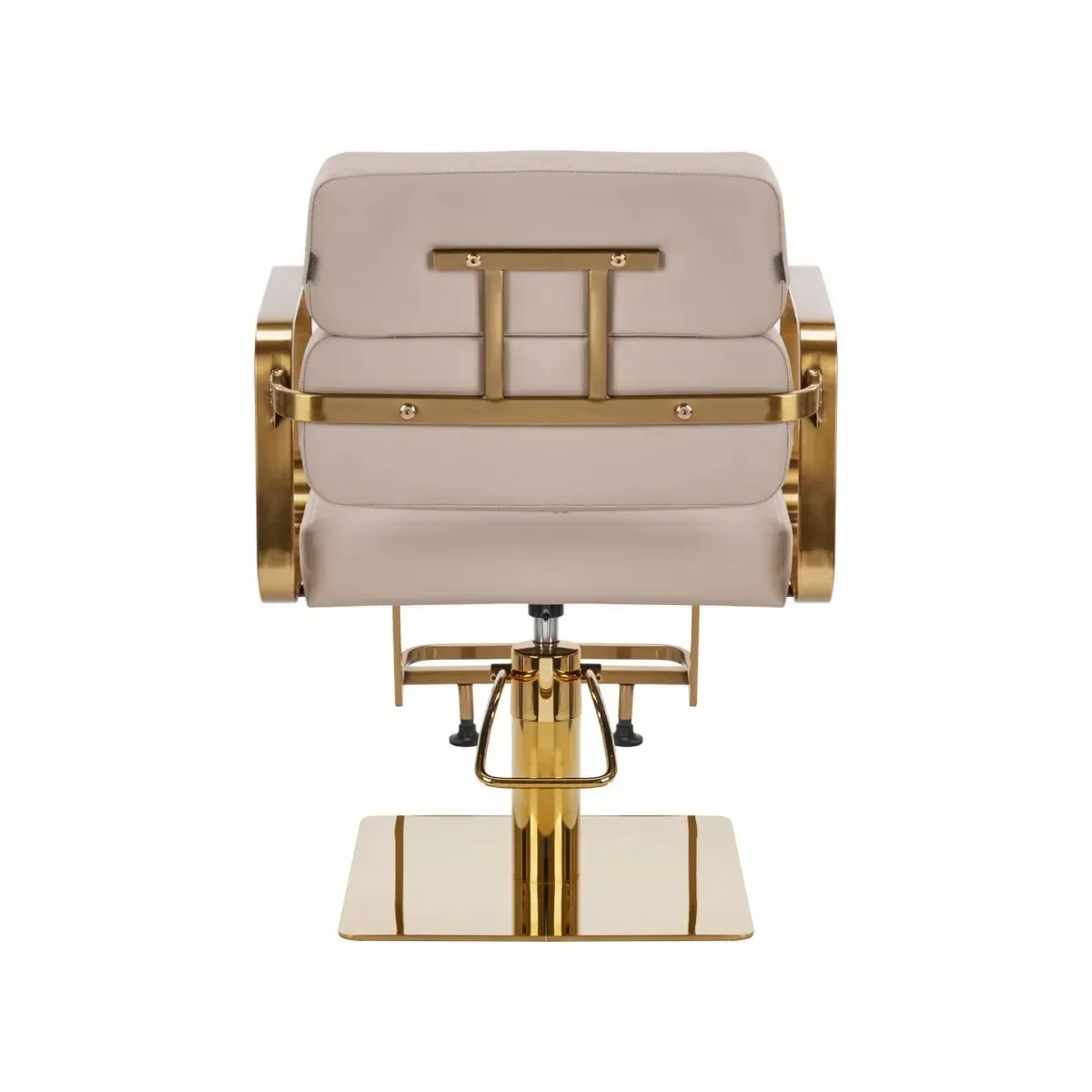 Poltrona per Parrucchiere Beige e Oro Eleva lo stile del tuo salone con la nostra esclusiva un connubio perfetto tra design raffinato e funzionalità avanzata. Questa poltrona è stata progettata per offrire il massimo comfort sia ai tuoi clienti che a te, grazie alle sue caratteristiche ergonomiche e al suo stile distintivo.