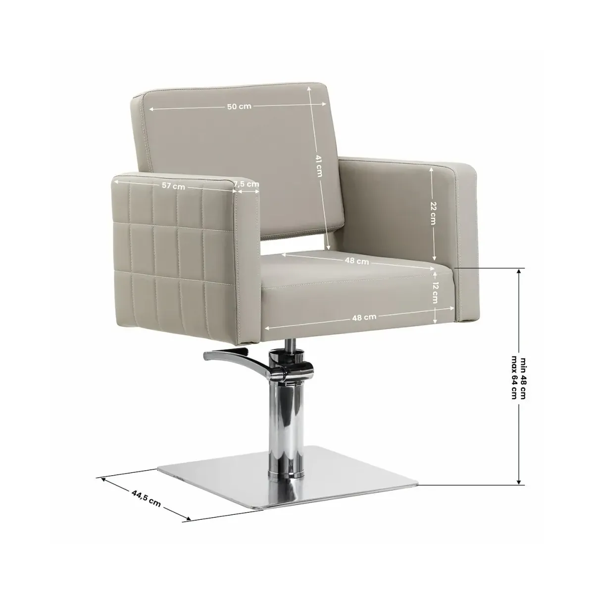 Poltrona per Parrucchiere Beige Eleva l'esperienza dei tuoi clienti con la nostra Poltrona da Parrucchiere Begie con base Quadrata Luxury, un connubio perfetto tra design elegante, comfort superiore e funzionalità professionale. Questa poltrona è stata progettata per soddisfare le esigenze dei parrucchieri più esigenti e per offrire ai clienti un'esperienza di relax e benessere durante i trattamenti.