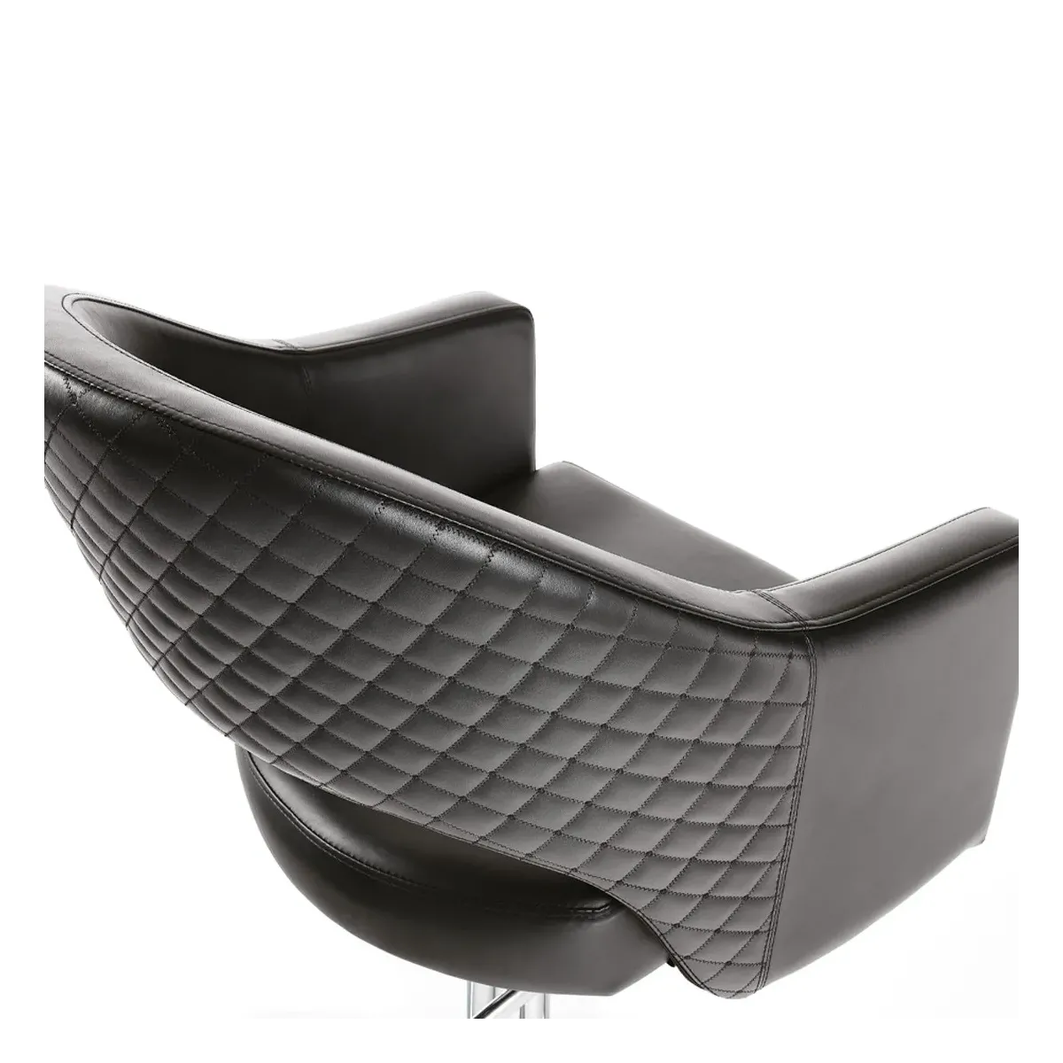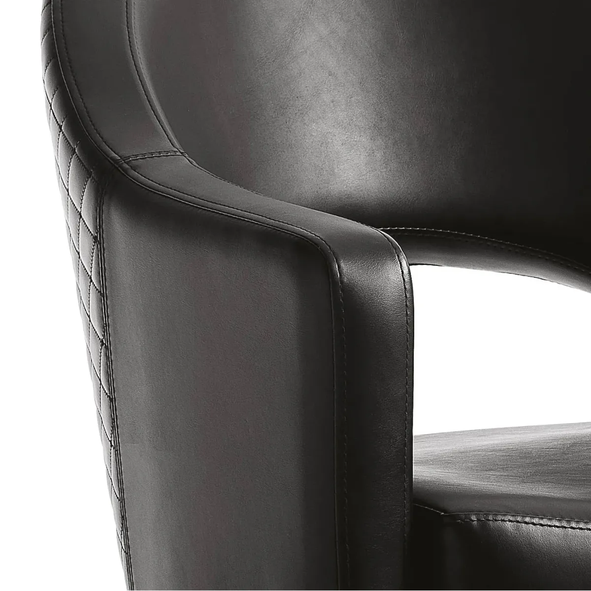 Poltrona girevole caratterizzata da angoli smussati e forme avvolgenti, Hair Paris Noveau presenta uno schienale impunturato che dona eleganza e raffinatezza, ed aggiunge un tocco di stile all’arredo. È completa di pompa idraulica e base a 5 razze. La struttura e interamente imbottita in poliuretano espanso e rivestita in sky ecopelle nero.